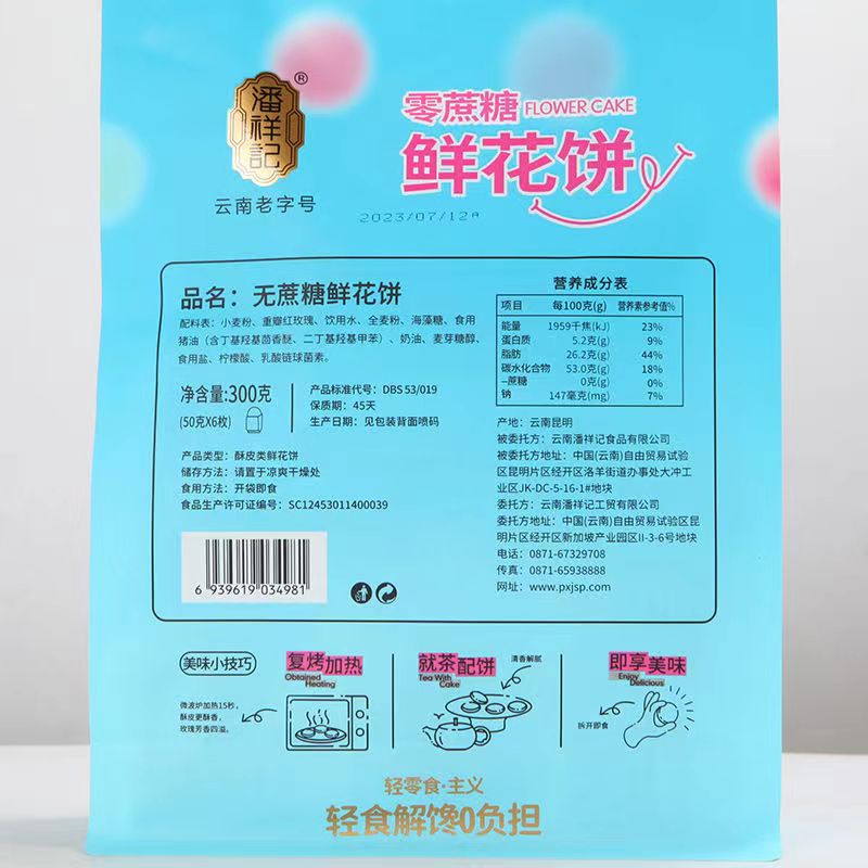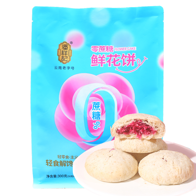潘祥记鲜花饼300g低糖旗舰店同款无蔗糖零食玫瑰饼中老年人零食品