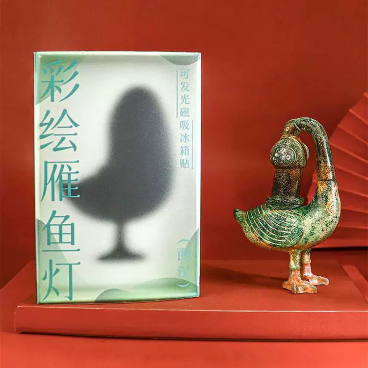 陕西博物周边彩绘树脂雁鱼铜灯发光冰箱贴复古文创装饰纪念伴手礼