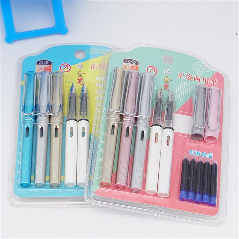 汉诺 铱金笔尖钢笔套装 学生写字钢笔 正姿/书写两用 彩色5支装