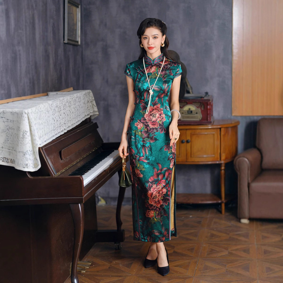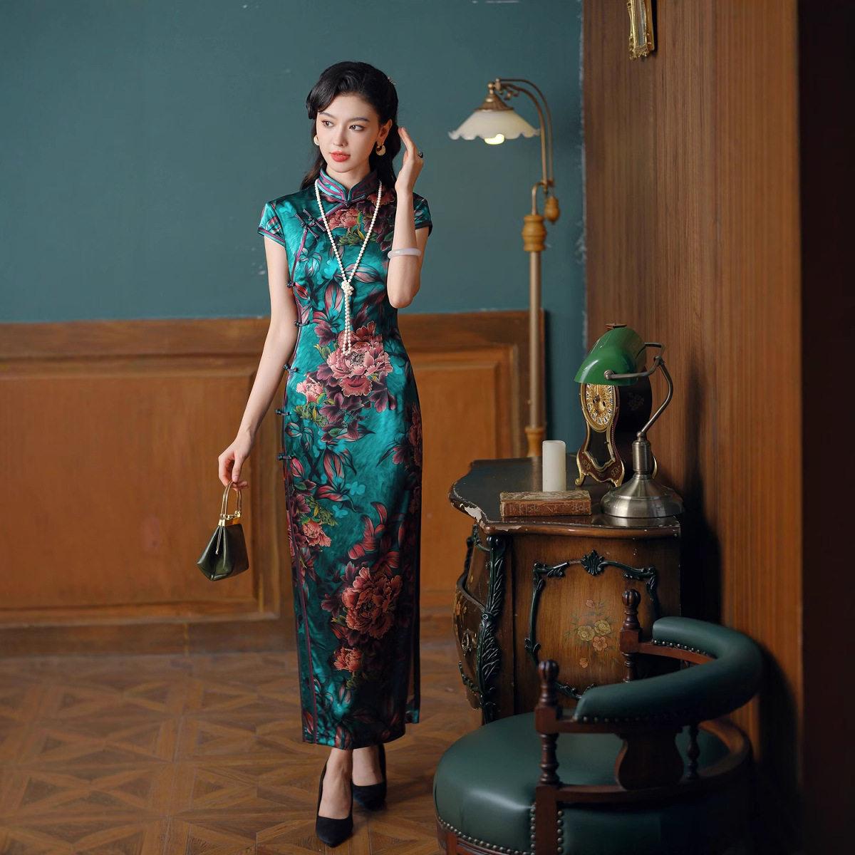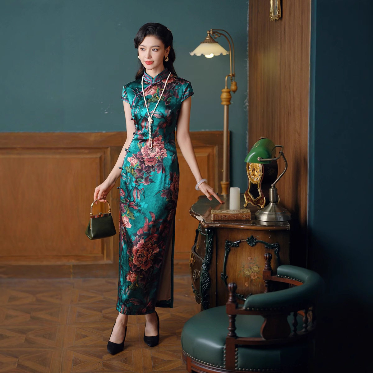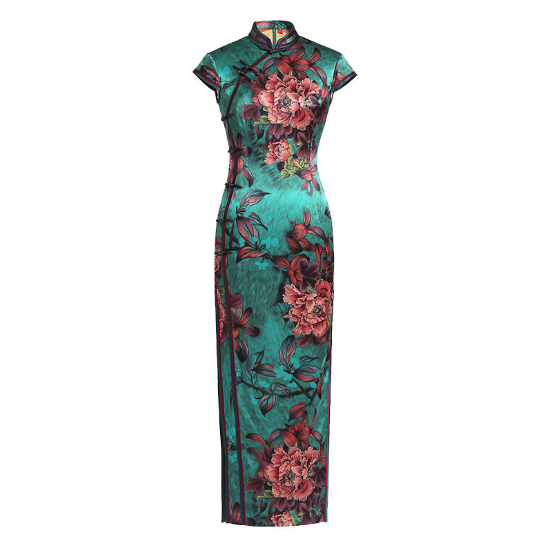 贵夫人绿色高级感桑蚕丝旗袍2025夏季真丝改良妈妈裙复古连衣裙潮