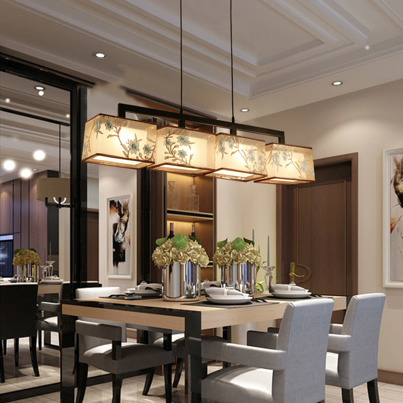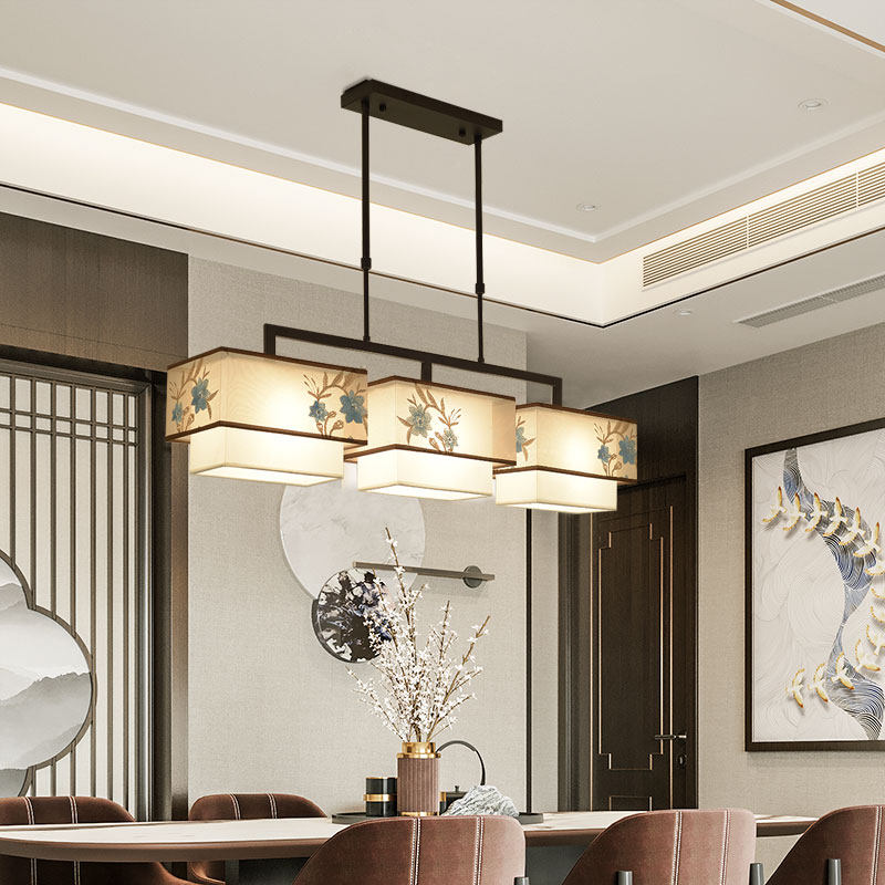 新中式餐厅吊灯长方形三头LED灯具中国风复古禅意书房茶室吧台灯