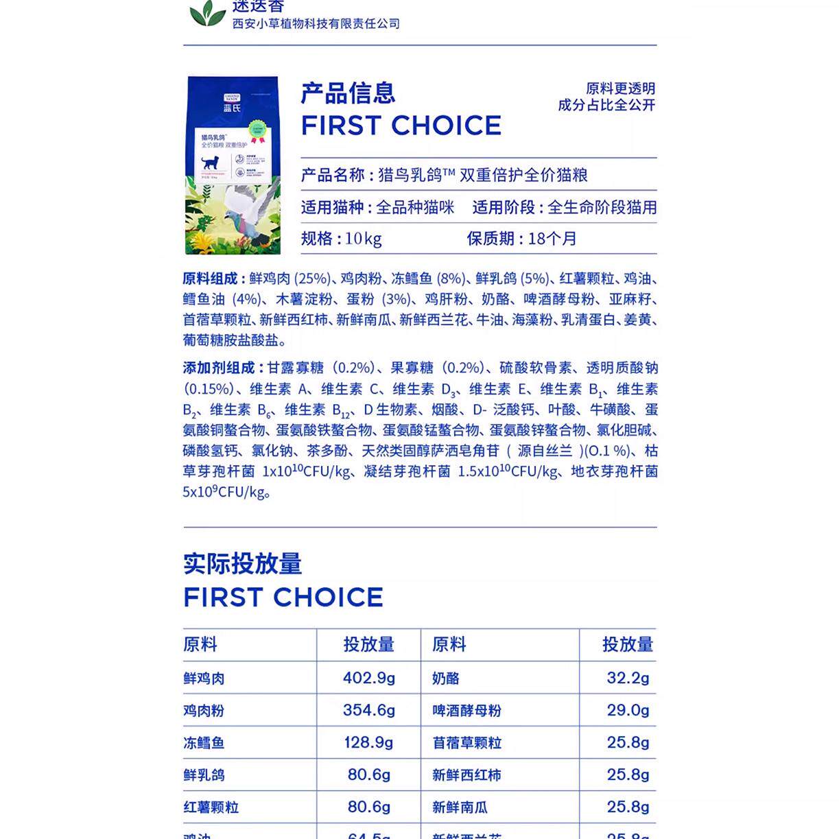 蓝氏猫粮乳鸽猎鸟猎兔冻干全价猫粮10kg幼猫粮10公斤正品