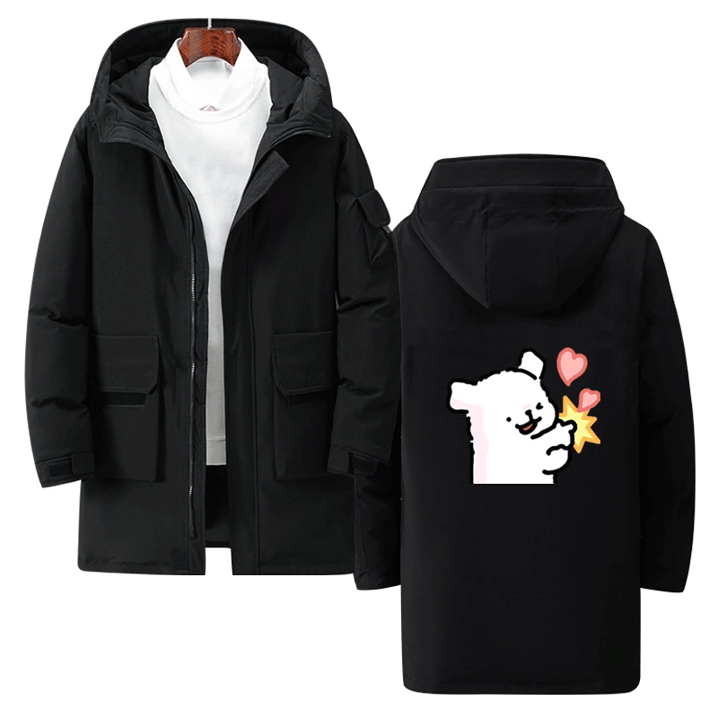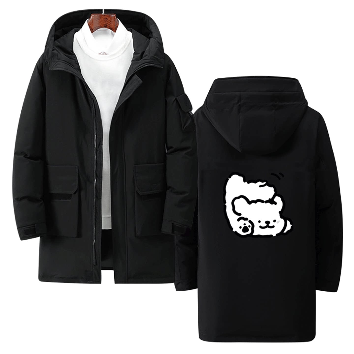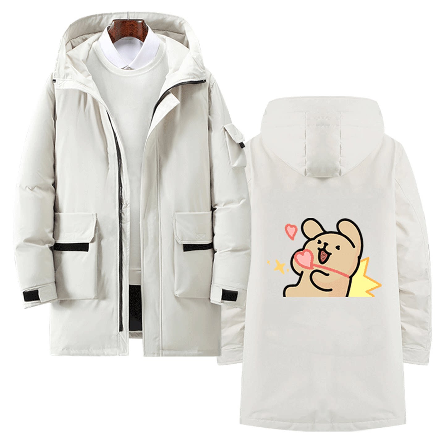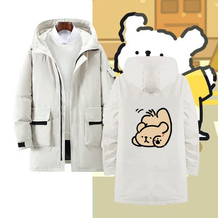 线条小狗卡通联名周边男女情侣休闲百搭可定制潮冬季中长款羽绒服