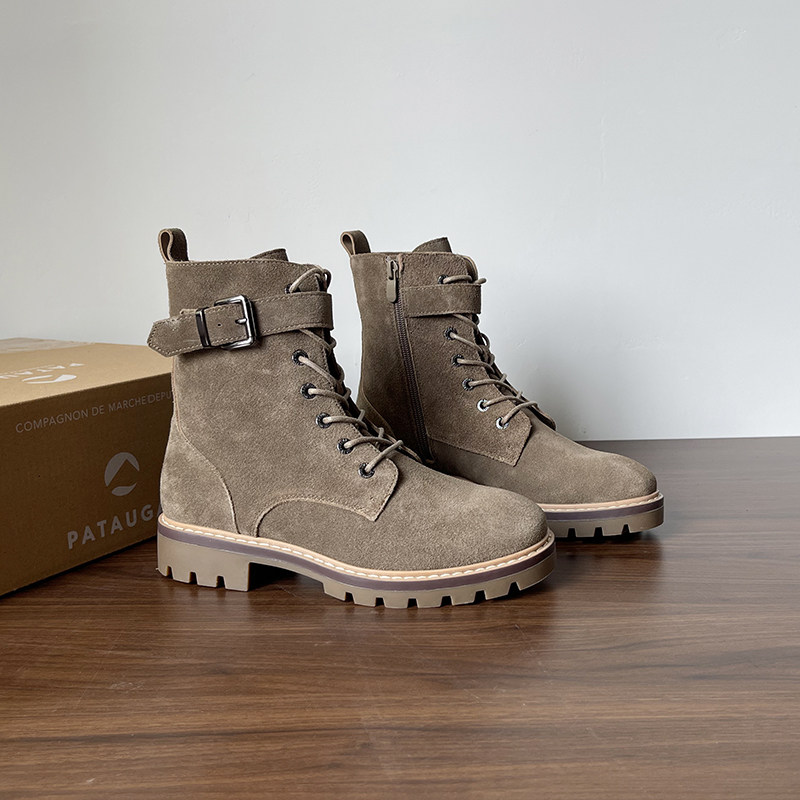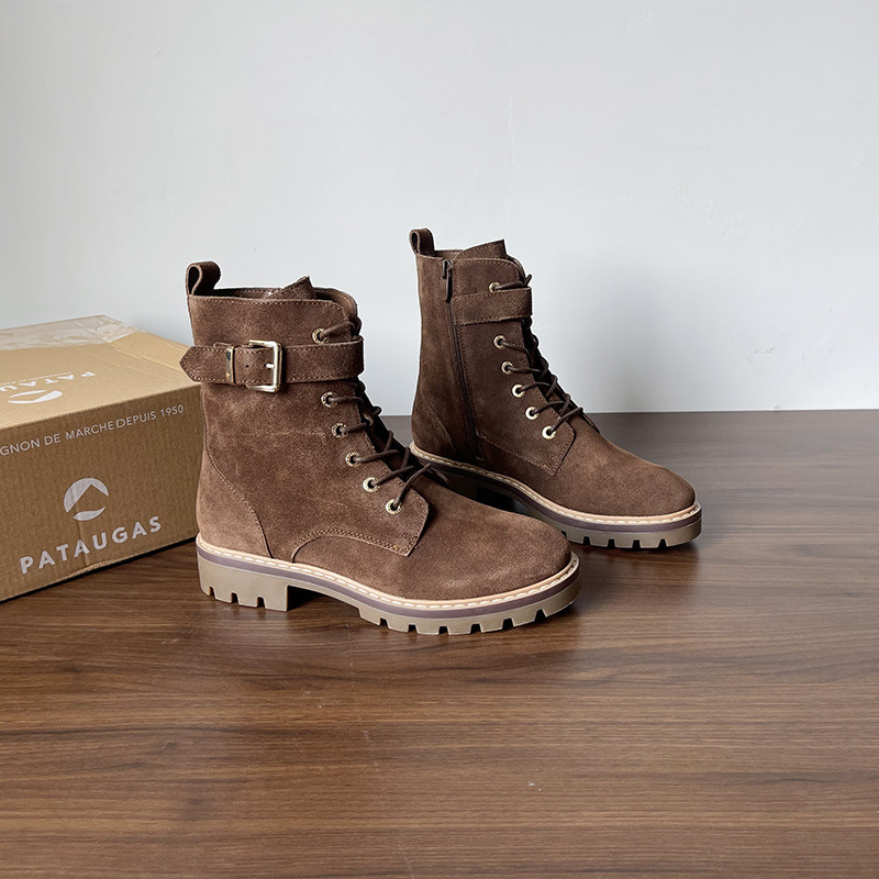 帅气美拉德外贸大码真皮系带搭扣马丁靴2025秋冬加绒保暖平底短靴