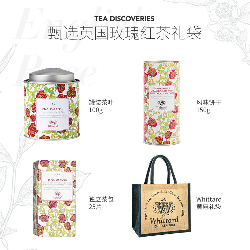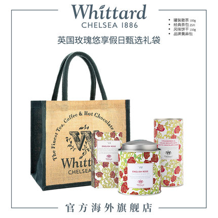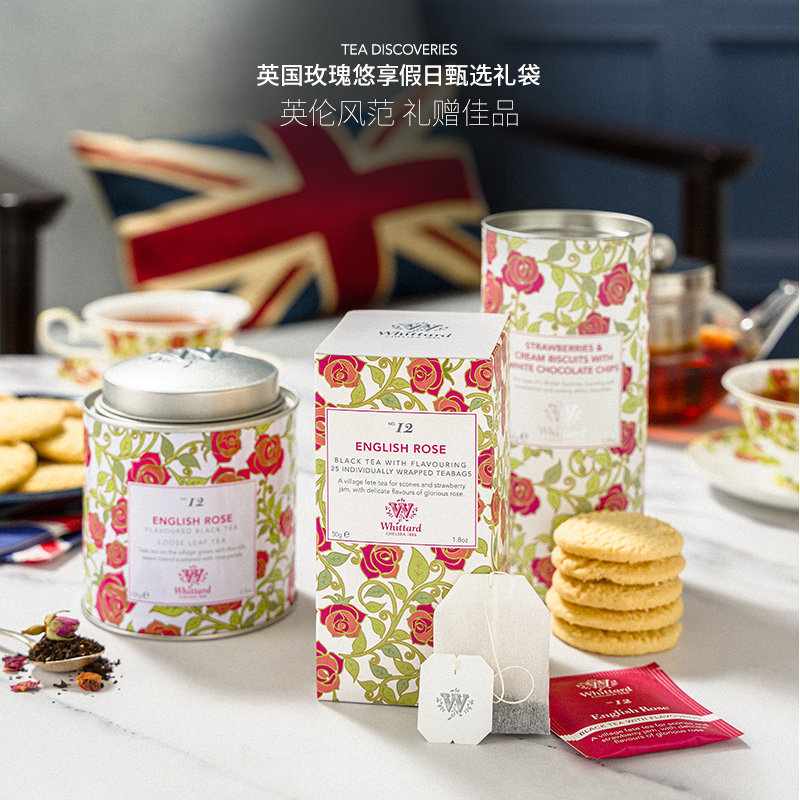 Whittard 英国进口 英国玫瑰悠享下午茶甄选礼袋英式红茶饼干送礼