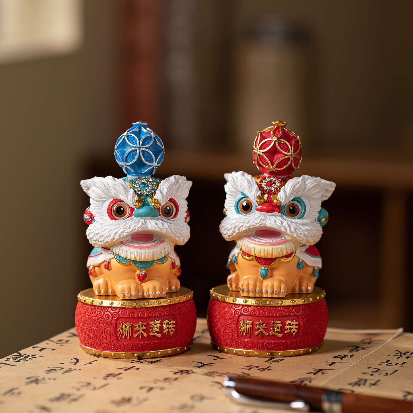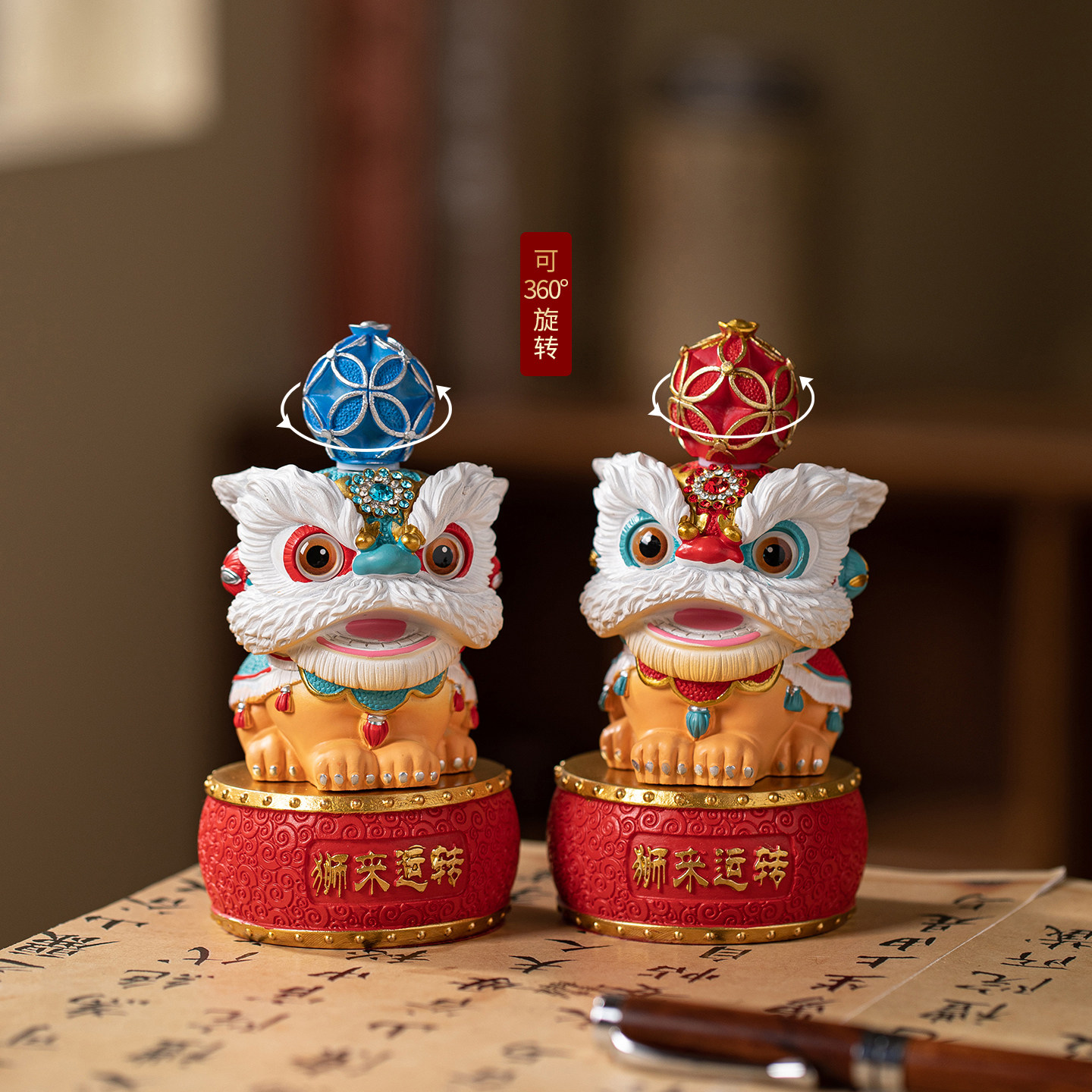 国潮佛山醒狮可旋转绣球一对茶宠摆件创意文创舞狮招财桌面装饰品
