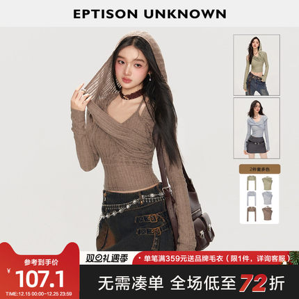 EPTISON针织衫女2025秋季新款复古连帽独特小个子修身辣妹上衣