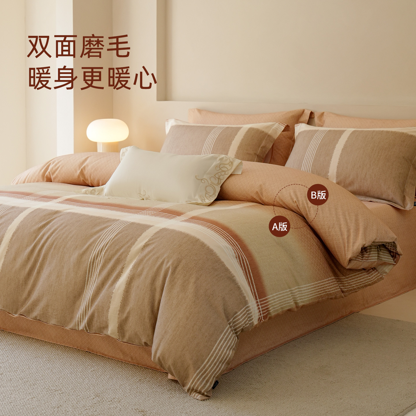 维科家纺A类全棉磨毛印花四件套秋冬季套件加厚保暖床单被套纯棉