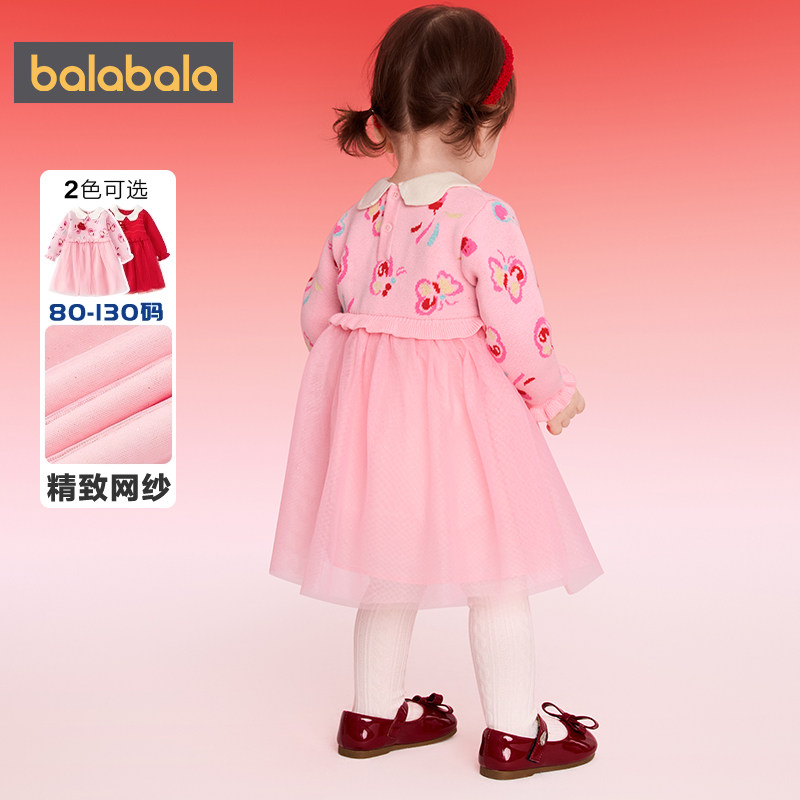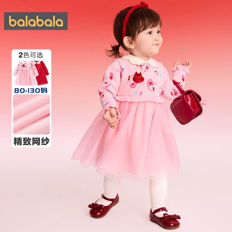 巴拉巴拉女童连衣裙宝宝拜年裙子冬装新款童装儿童红色洋气公主裙