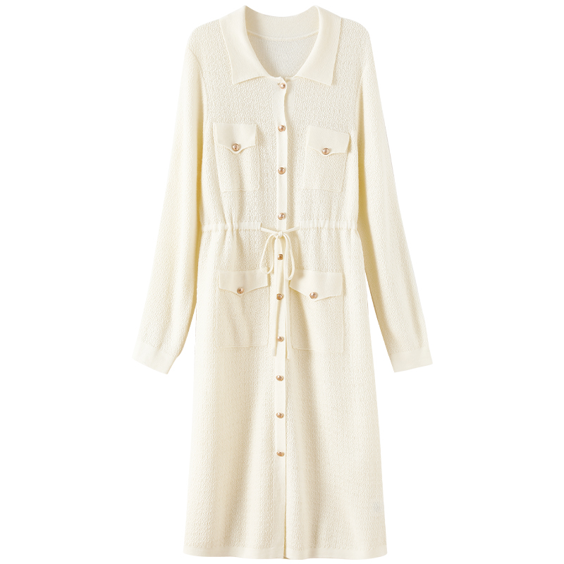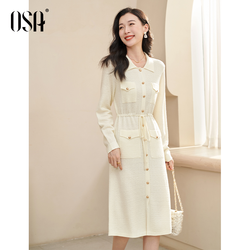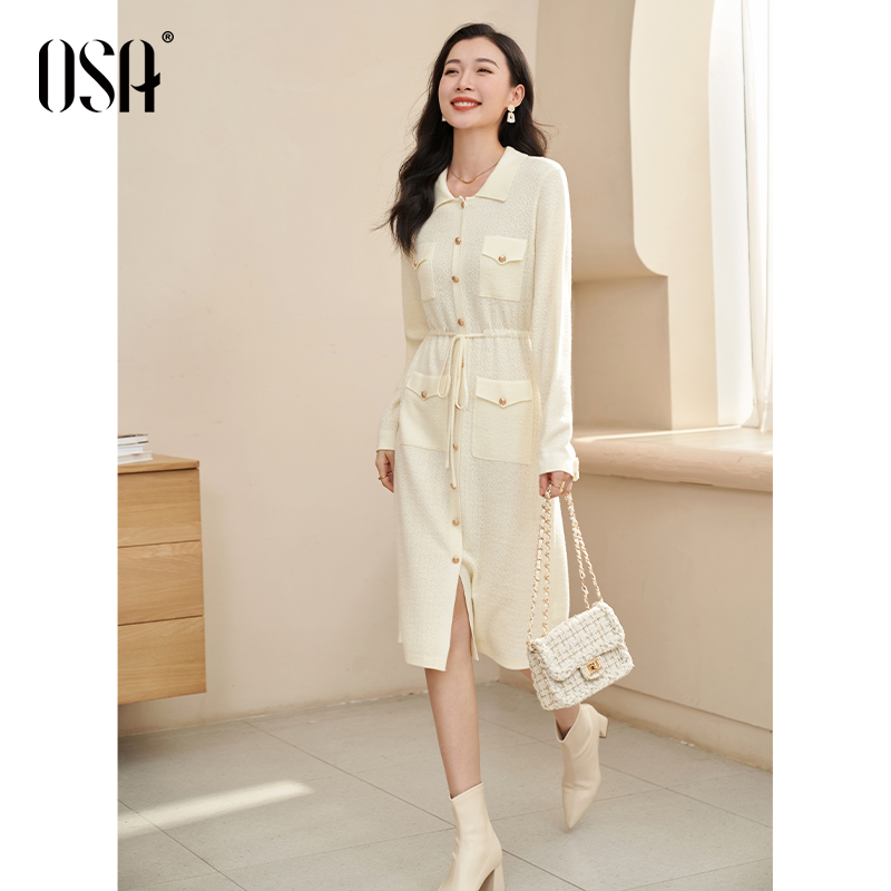 OSA欧莎高级感衬衫式提花连衣裙女初秋装2023年新款气质显瘦裙子