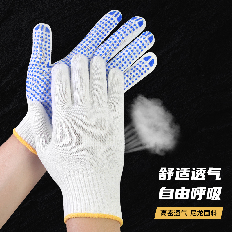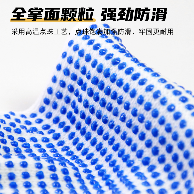 劳保手套蓝色点胶点塑颗粒纯棉纱加厚耐磨防滑工地劳动工作干活男
