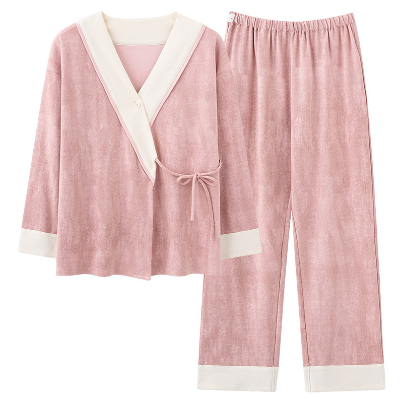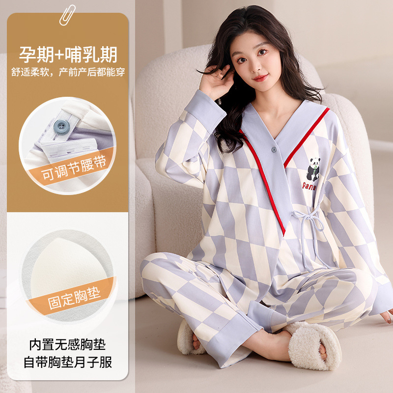 月子服睡衣女款和服带胸垫春秋季仿棉哺乳待产喂奶孕妇家居服