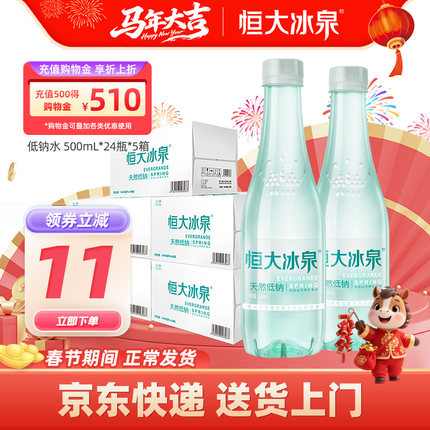 恒大冰泉低钠水天然矿泉水500mL*24瓶*5箱饮用水纯净水整箱批特价