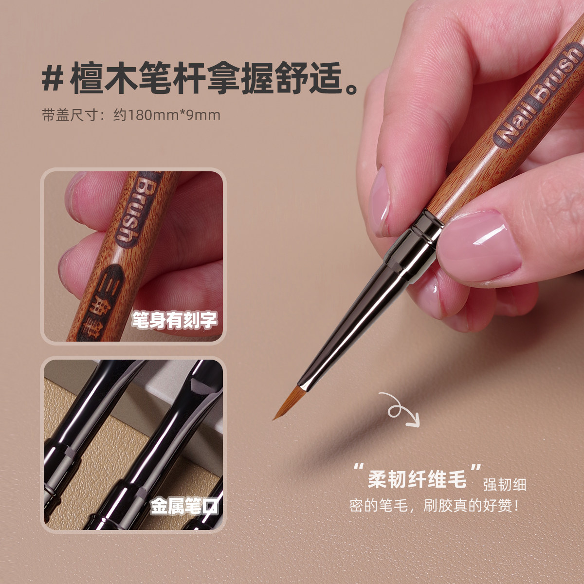 美甲笔檀木杆带盖三角笔彩绘笔画蝴蝶画花瓣叶子压花笔美甲工具