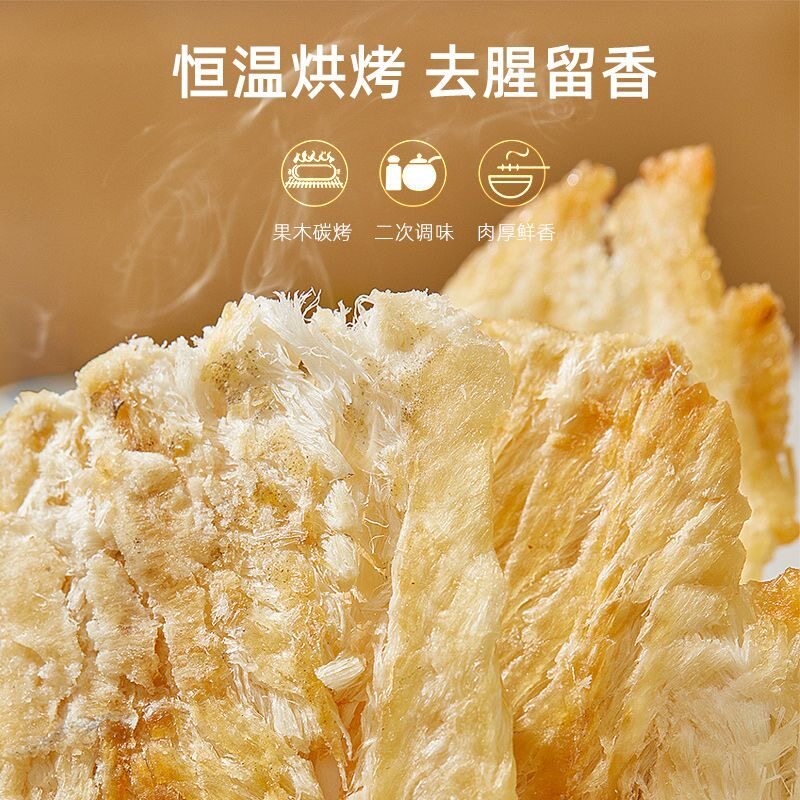 过年鳕鱼片烤鱼片孕妇孕期儿童健康低脂海味海鲜开袋即食碳烤深海
