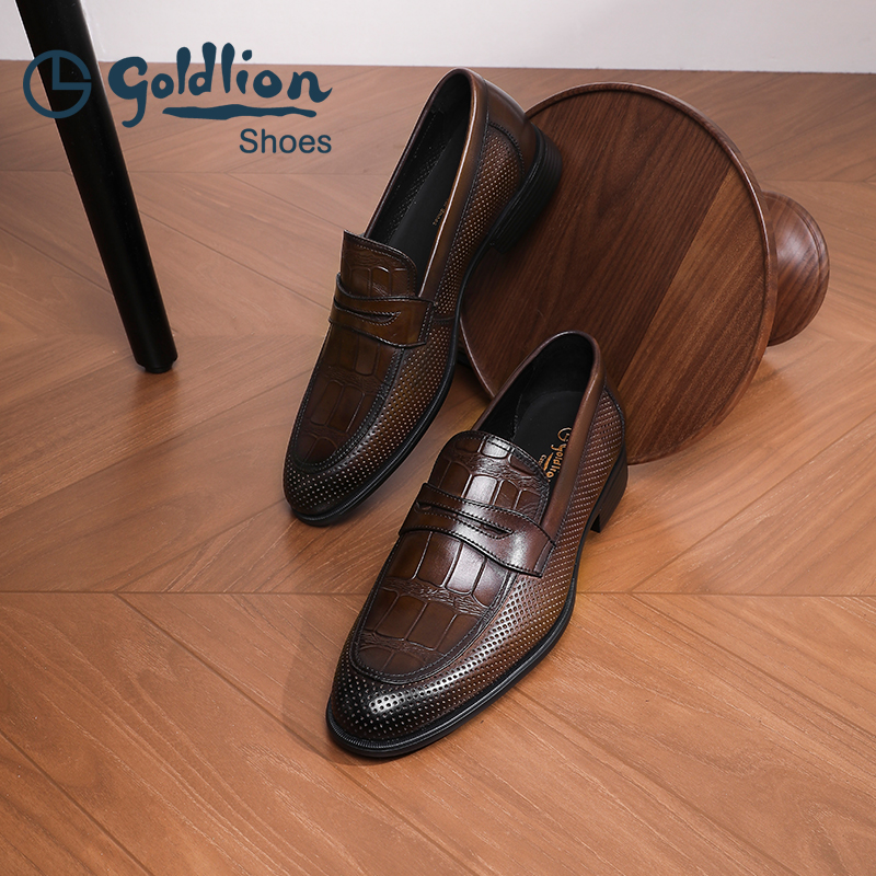 金利来男鞋皮鞋新品柔软商务一脚套乐福鞋男耐磨冲孔休闲皮鞋男士