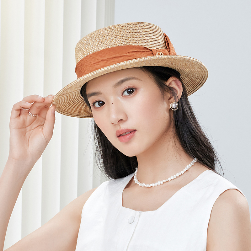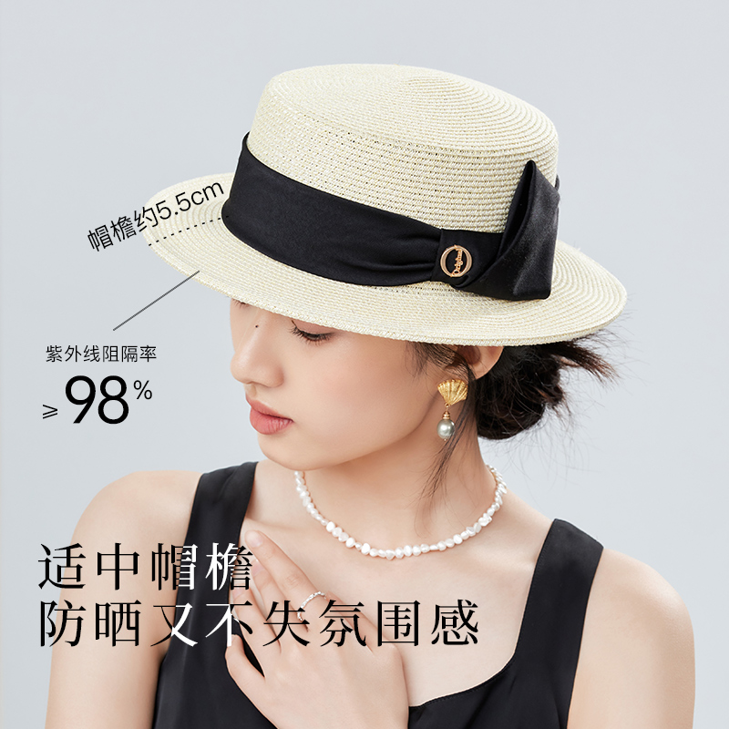 siggi 草帽女可折叠春夏短平檐遮阳帽时尚防晒帽子草编平顶太阳帽