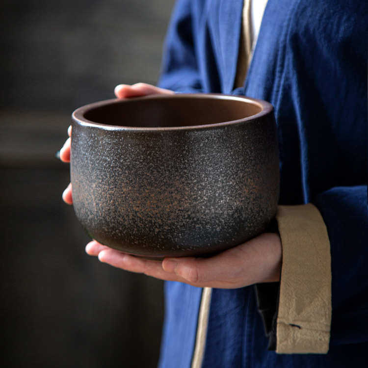 柴烧茶洗粗陶窑变日式家用大号功夫茶具配件茶杯洗茶渣桶圆形盆栽