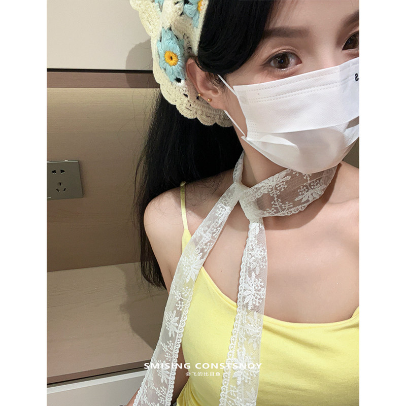 2025新款韩系纯欲蕾丝飘带细长条丝巾女春夏时尚气质装饰窄领巾潮