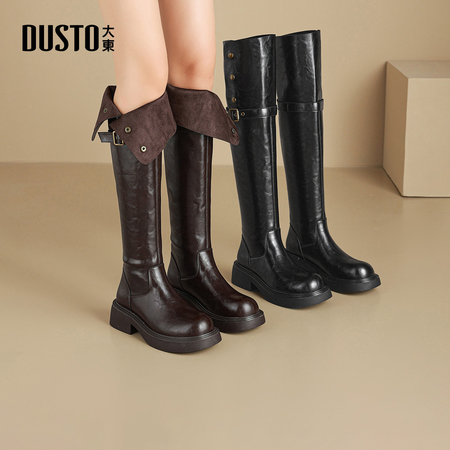 大东dd过膝长筒靴2025年冬季新款女靴厚底时尚骑士靴瘦瘦靴长子女