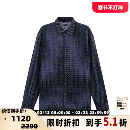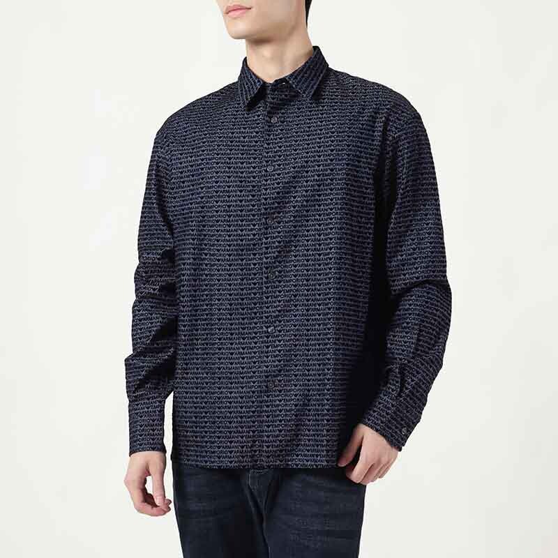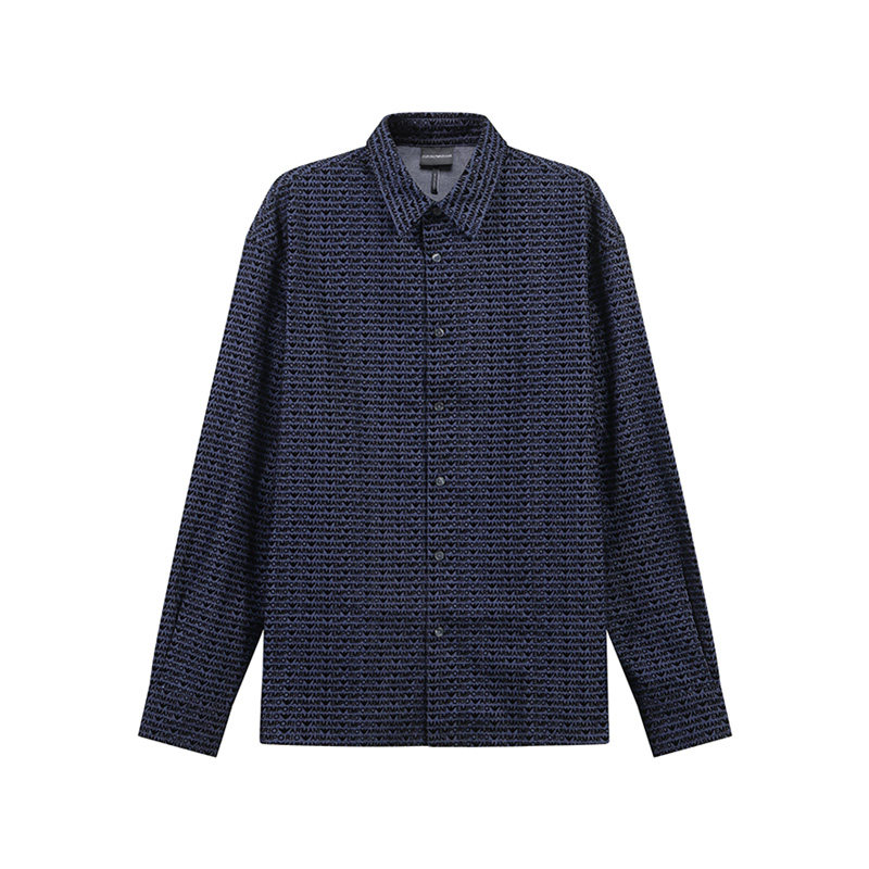 Armani阿玛尼EA 男士植绒字母印花休闲长袖衬衫银泰百货 300095