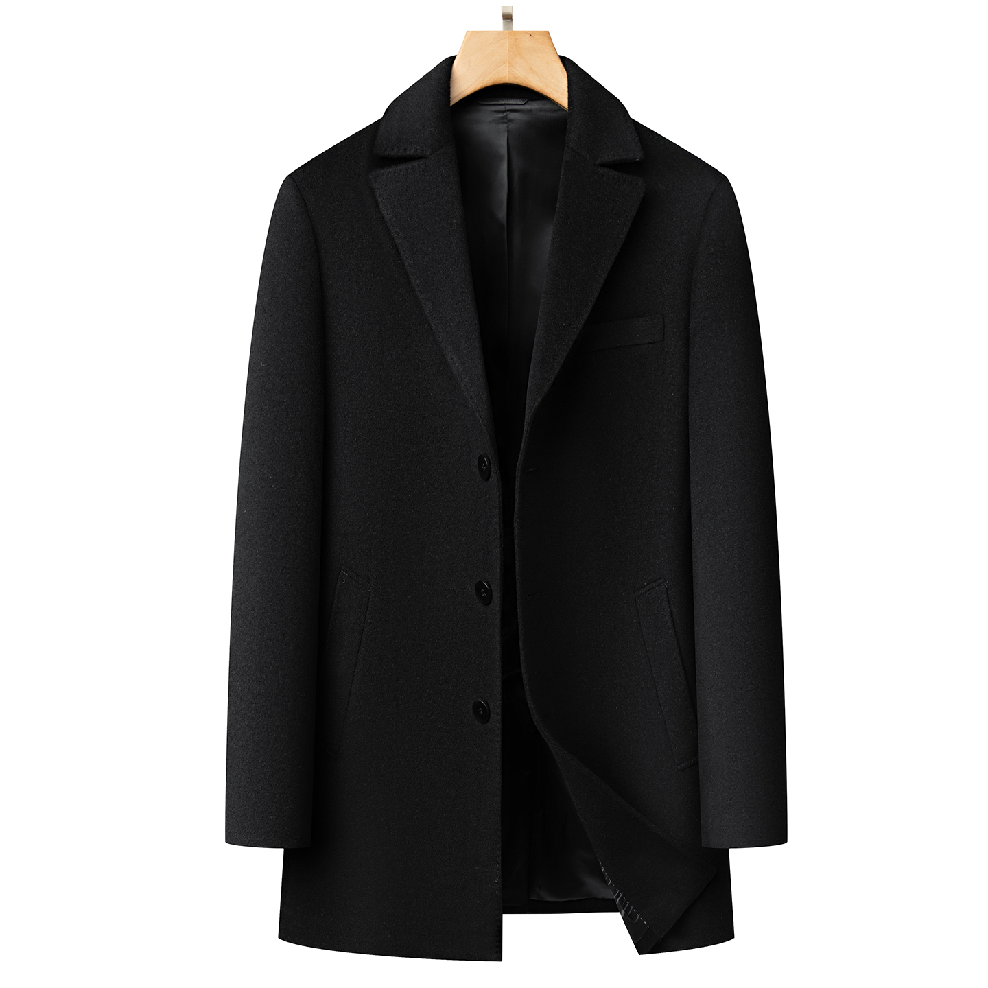 西装领毛呢大衣男款100纯羊毛