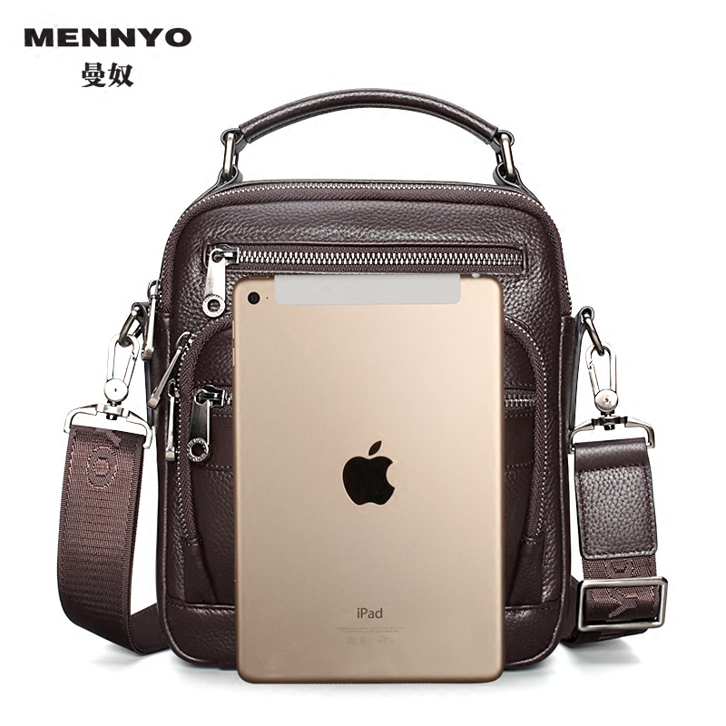 MENNYO曼奴男士竖款大容量单肩包斜挎包手提包男士背包真皮商务包