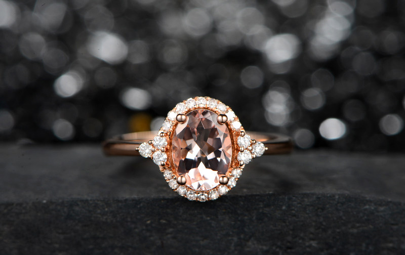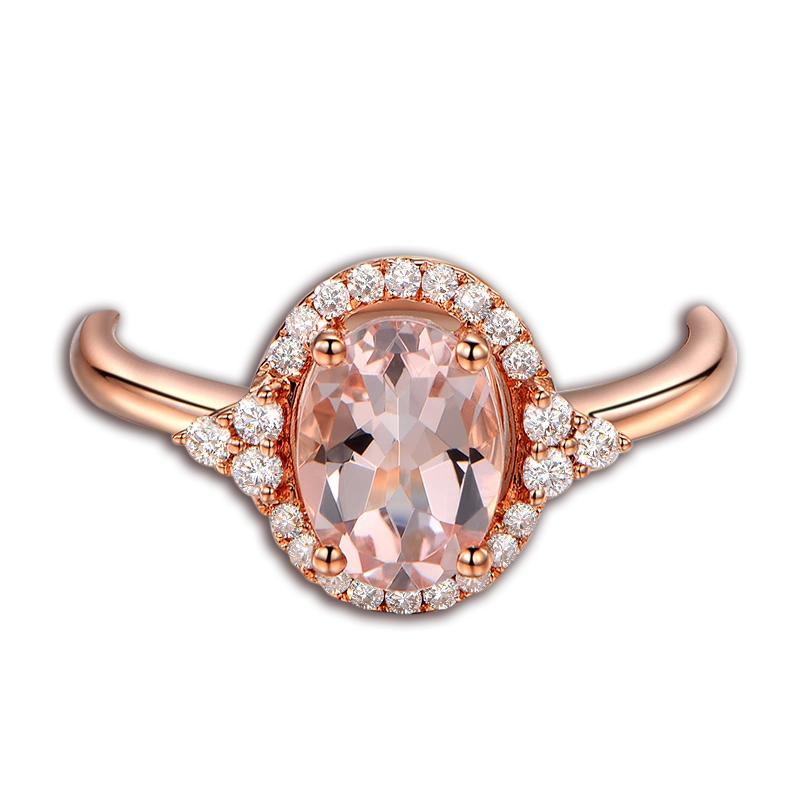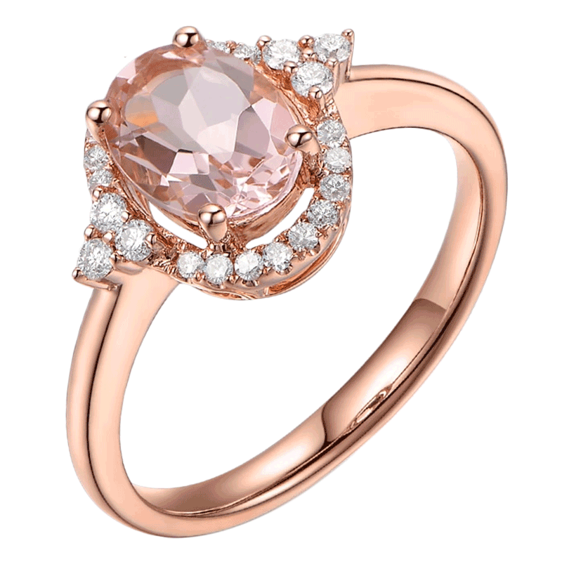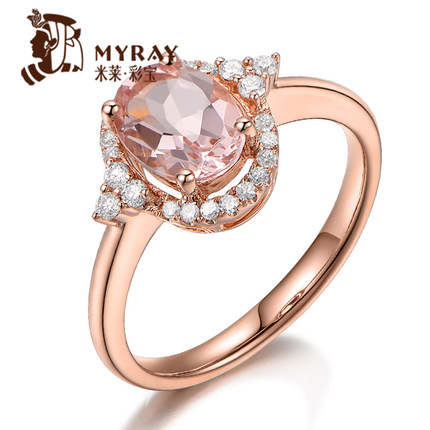 米莱珠宝1.25克拉天然摩根石戒指 女 18K金(玫瑰)镶23分钻 彩宝