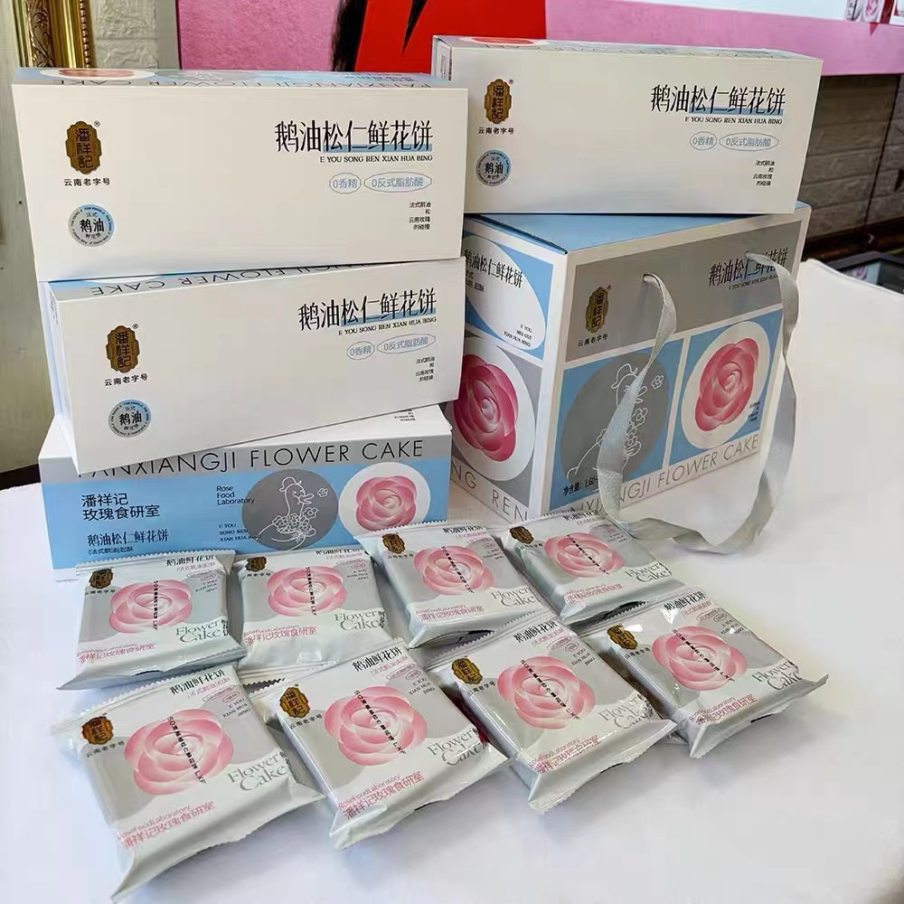 潘祥记鹅油玫瑰松仁味盒装鲜花饼糕点云南特产下午茶伴手礼