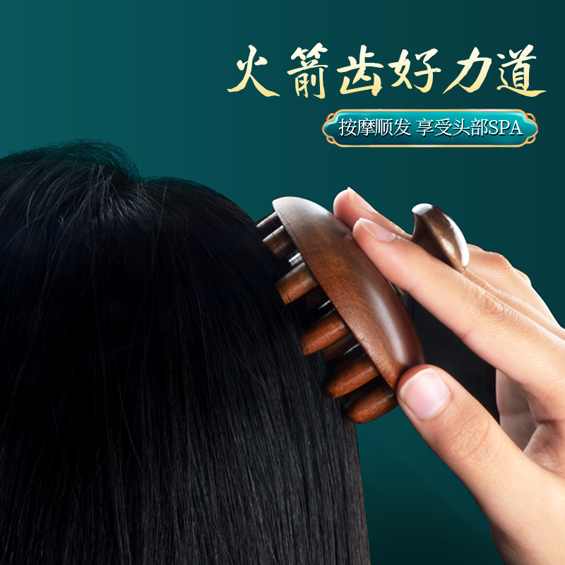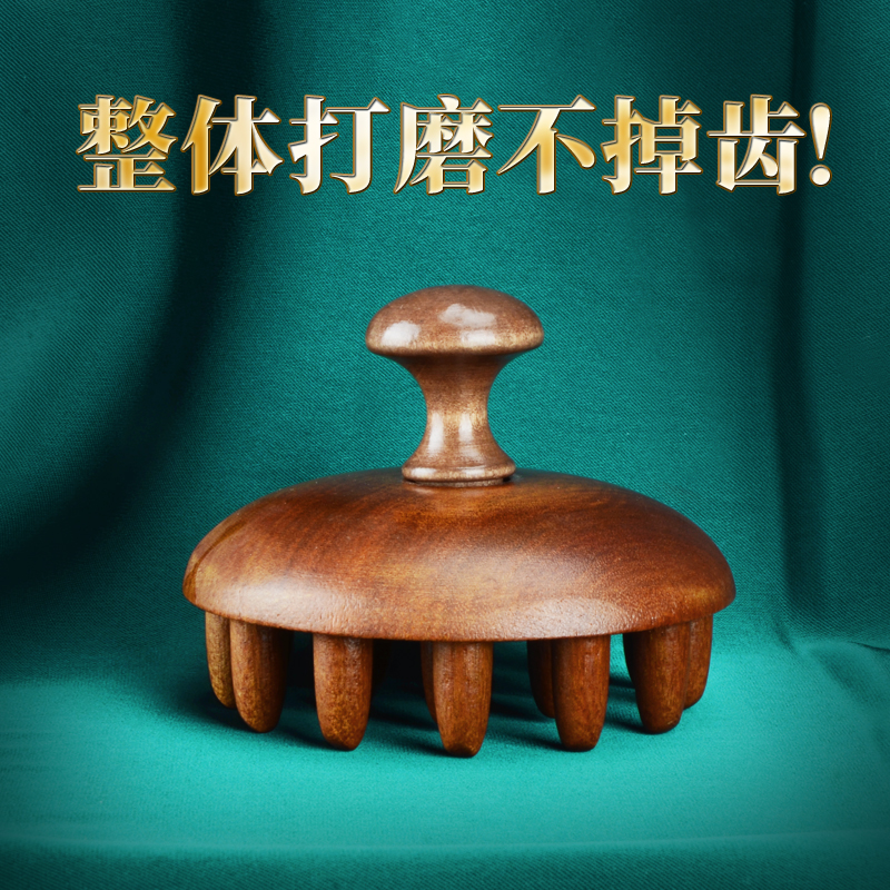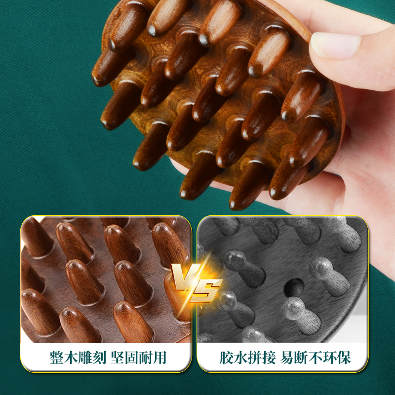 天然檀木圆盘头皮按摩梳头部经络疏通木梳子刮痧头疗经络刷指环梳
