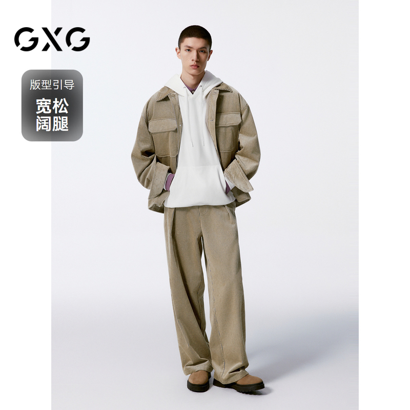 GXG男装 商场同款卡其灯芯绒休闲裤宽松运动裤 24年秋G24X023040