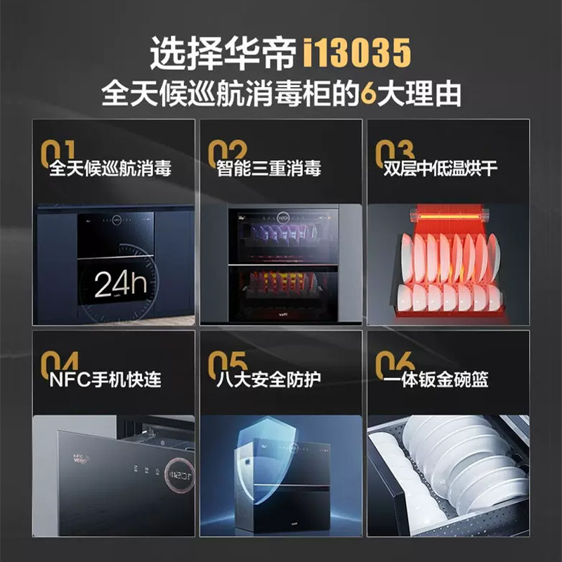 华帝i13035消毒柜家用小型嵌入式厨房碗柜碗筷消毒烘干存储一体机