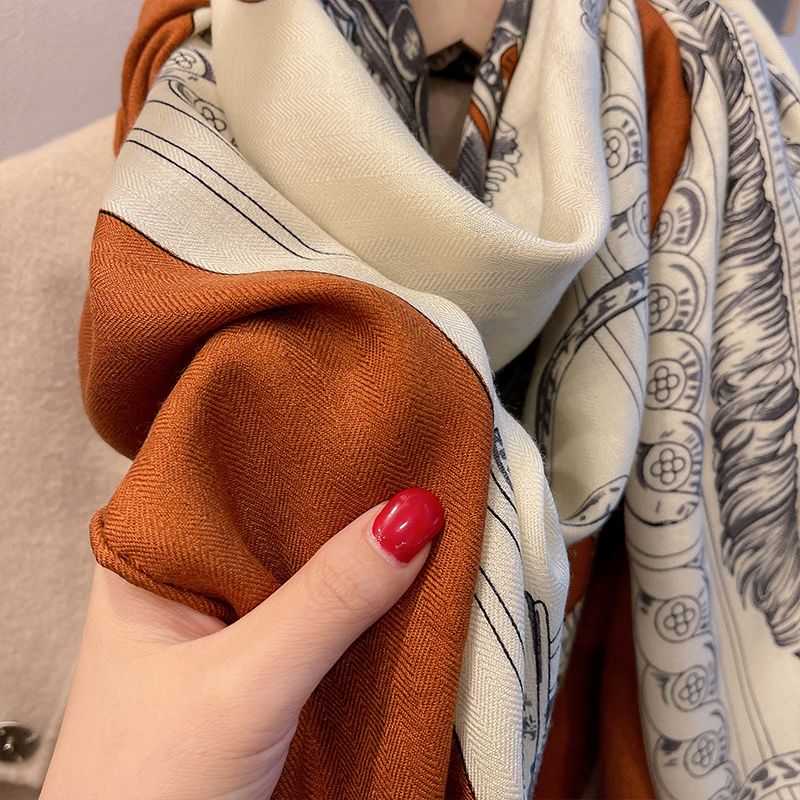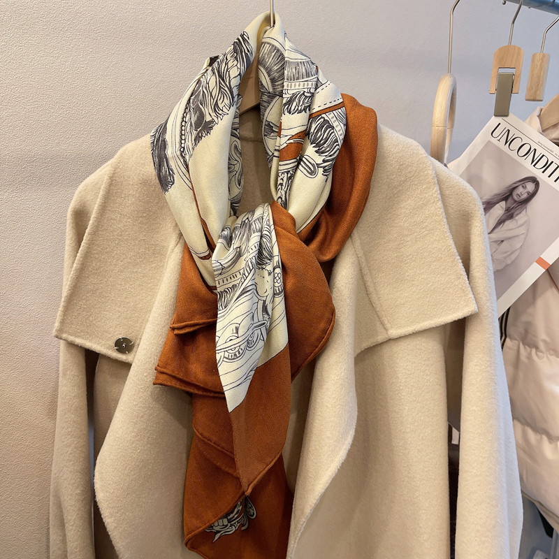 简约通勤秋冬季人字纹真丝羊毛大方巾办公室保暖围巾披肩两用女