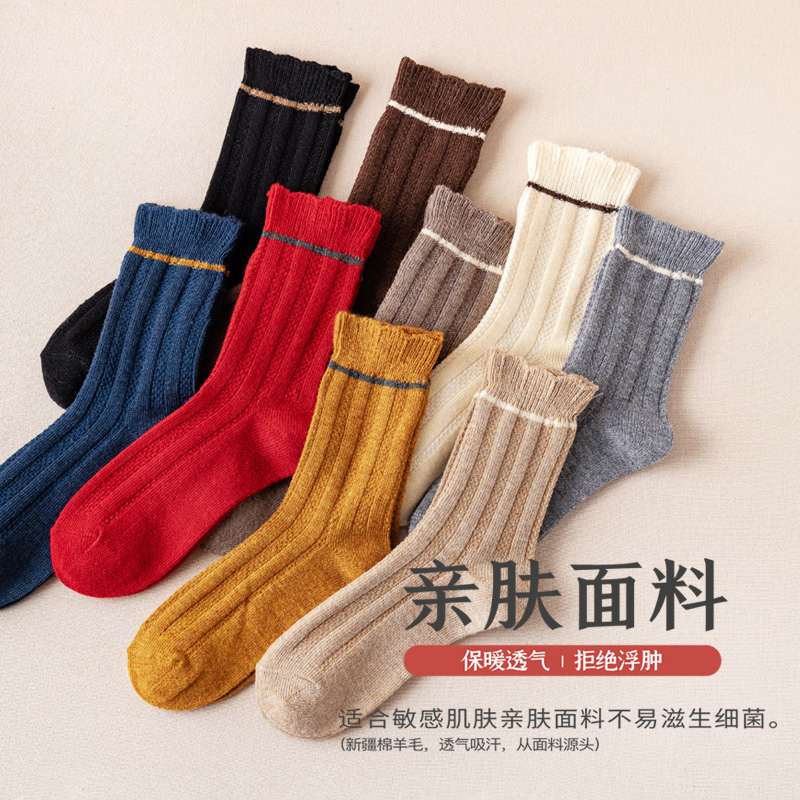 羊毛中筒袜子女秋冬款加厚羊绒保暖日系长筒棉袜长袜冬季月子冬天