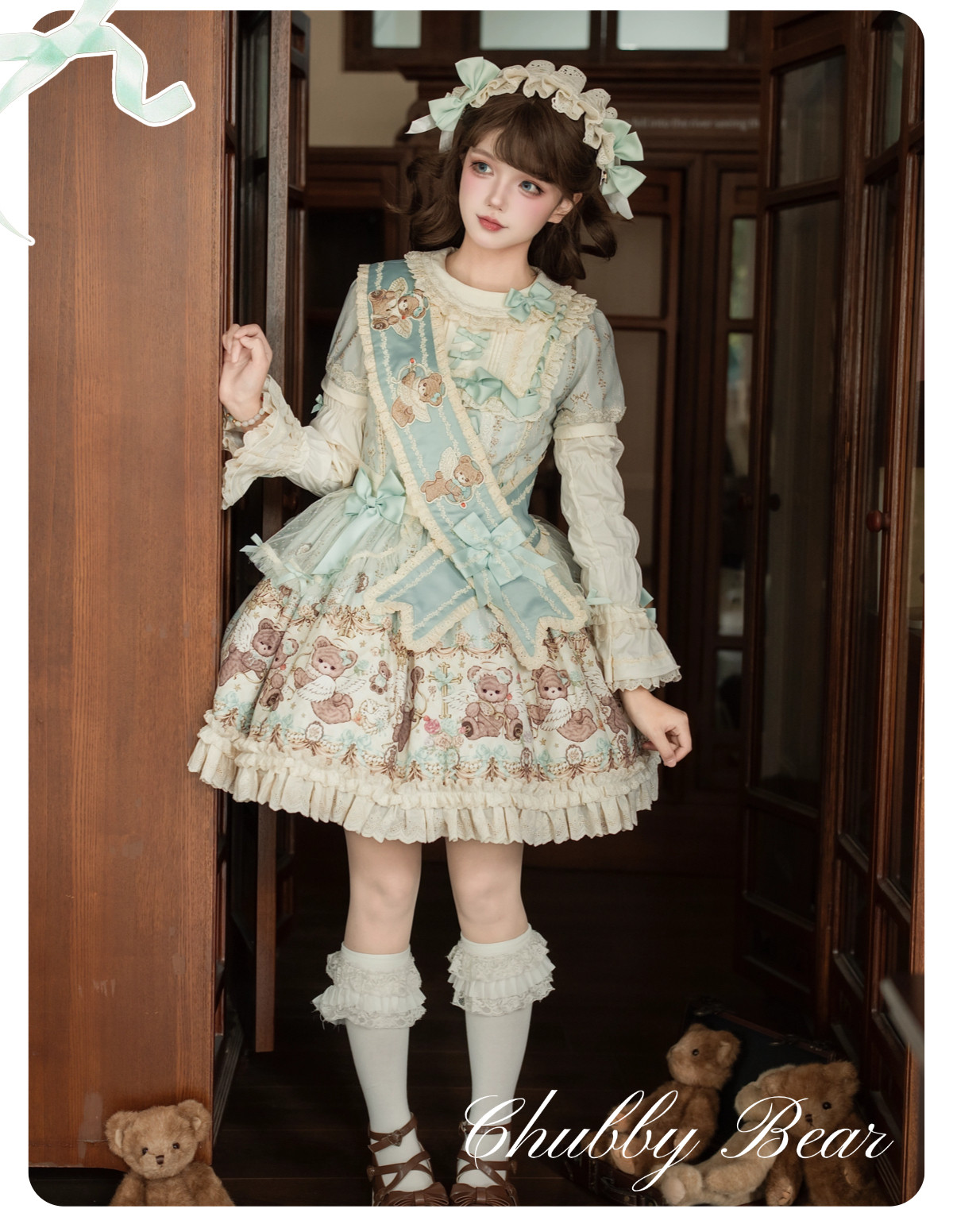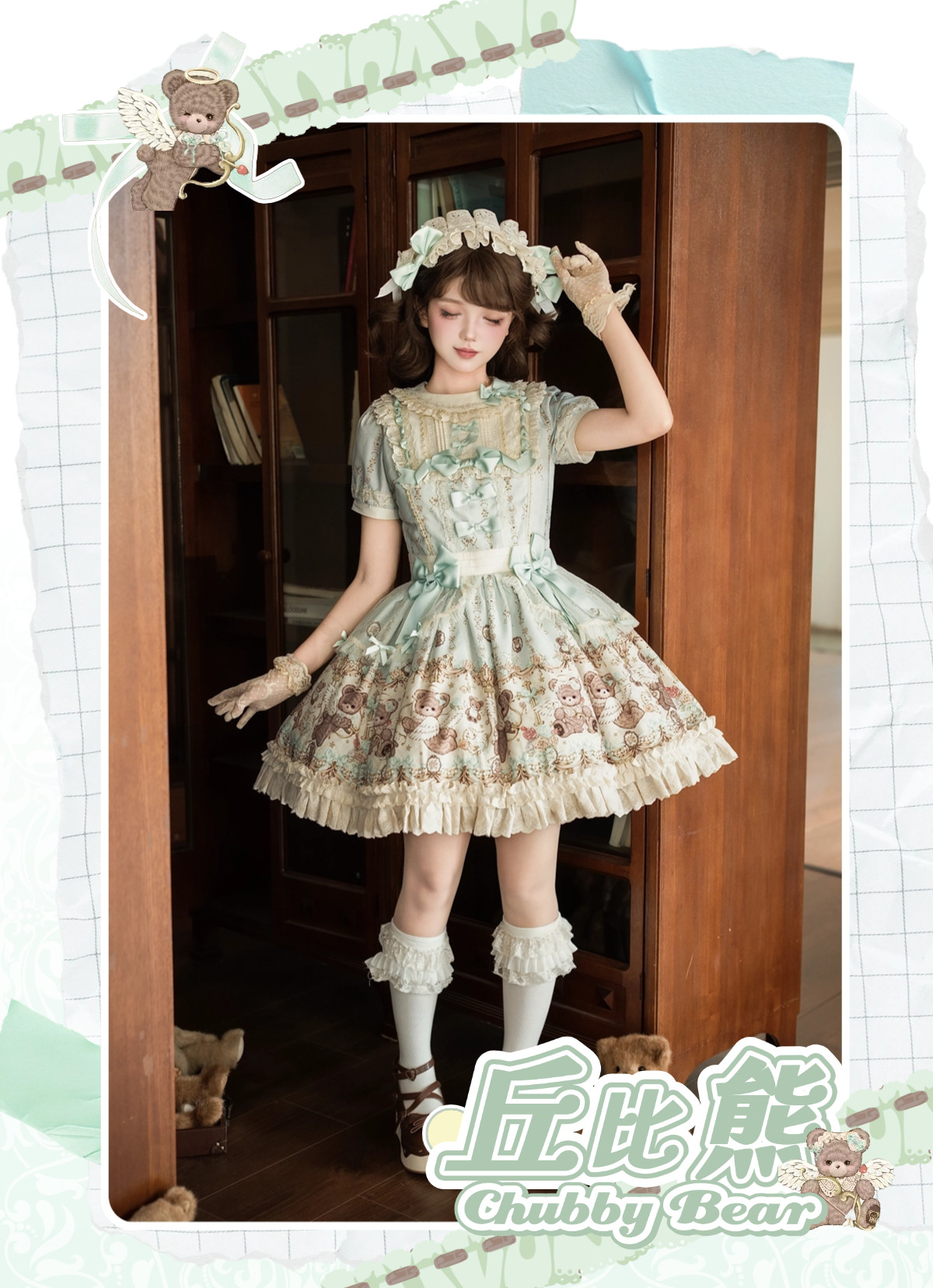 【定金】夏日原创重工doll感古董柄图Lolita丘比熊OP款绶带连衣裙