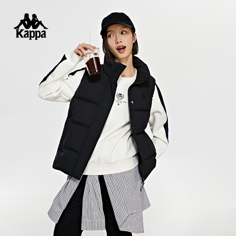 Kappa卡帕复古羽绒马甲2023女冬字母刺绣立领保暖背心K0D82NY20
