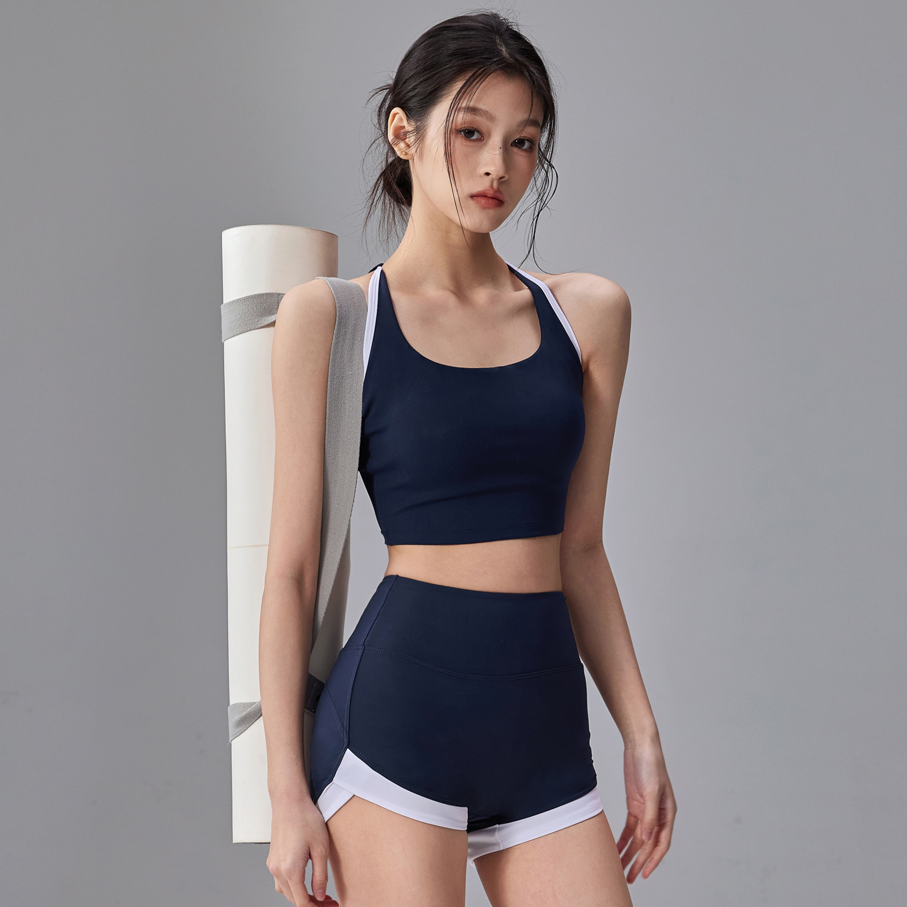 健身女孩细带运动内衣一体式防震聚拢拼色瑜伽背心专业跑步文胸新