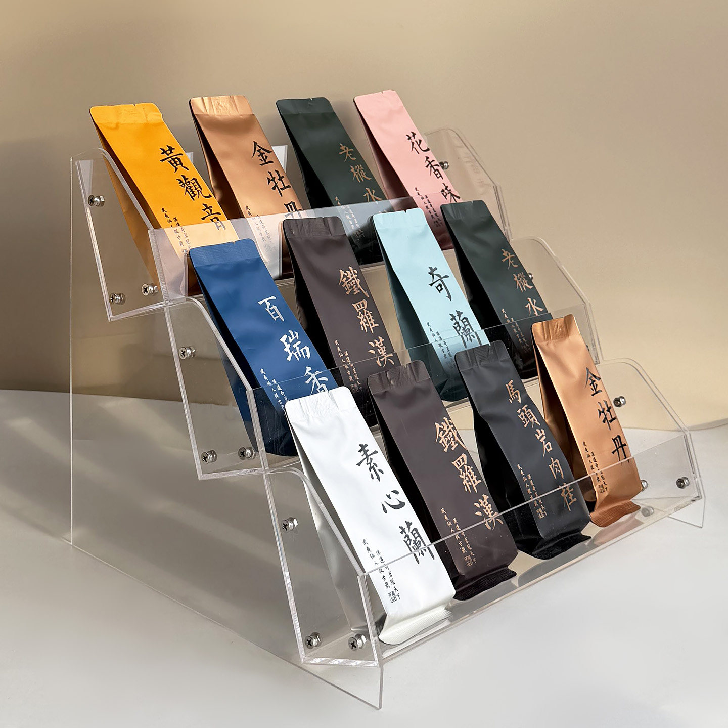 透明亚克力茶包展示架多层阶梯式文创陈列架倾斜文具店中性笔货架