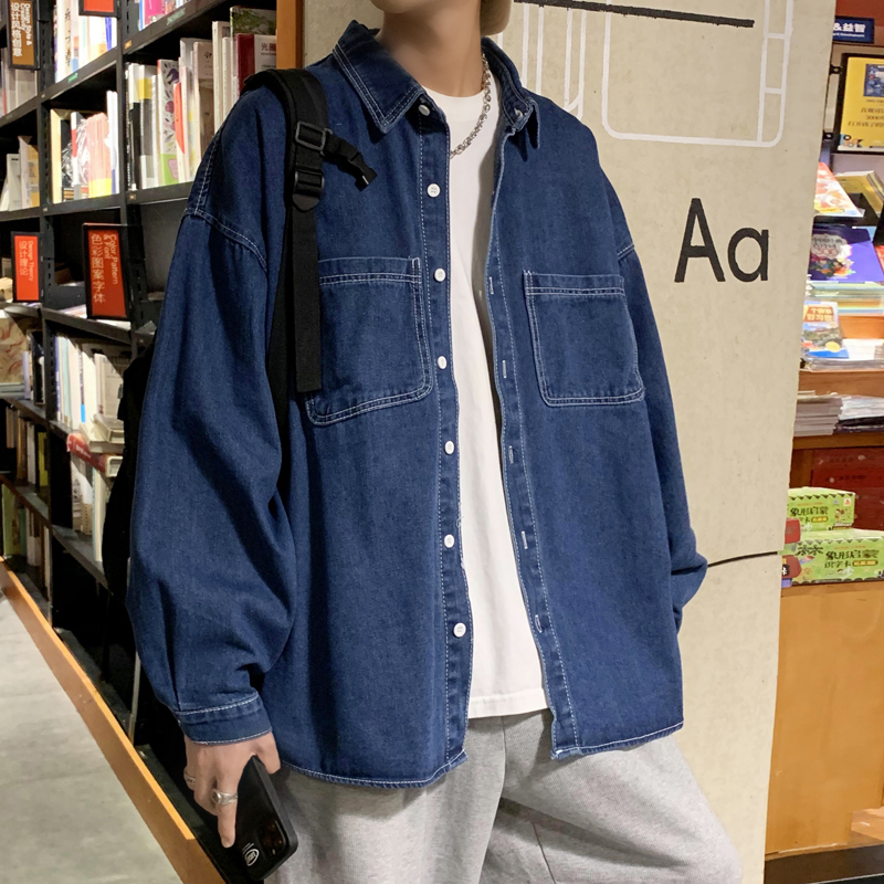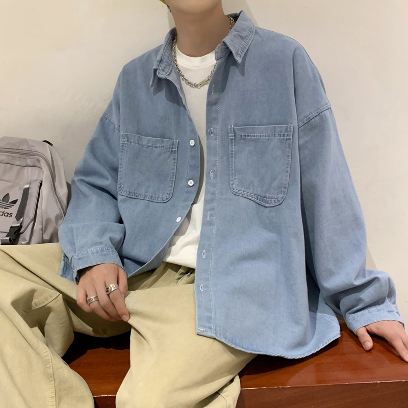 长袖韩版潮流高级感男oversize工装衬衣宽松百搭休闲牛仔衬衫外套