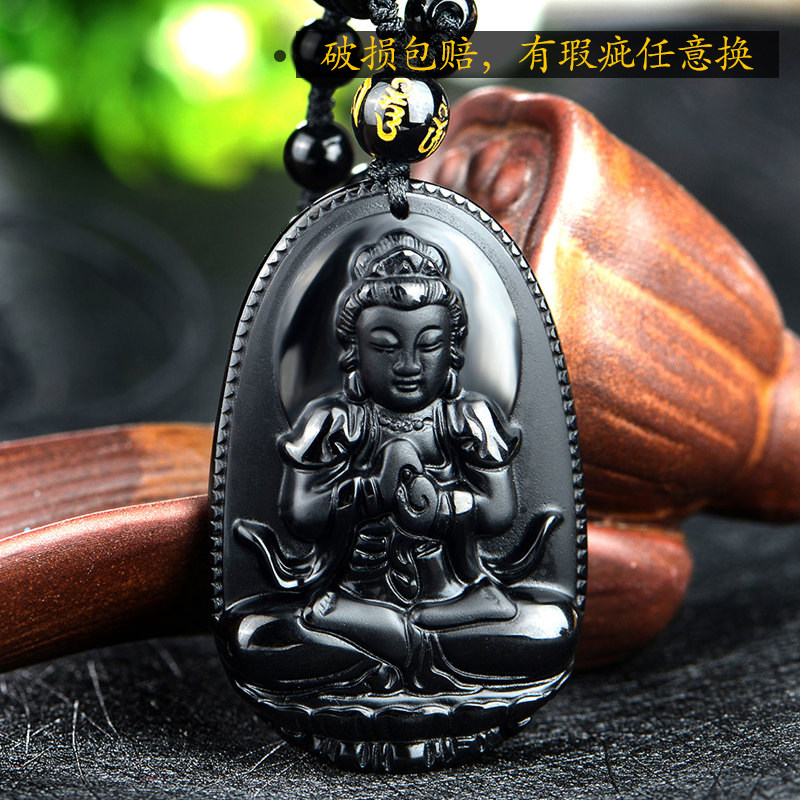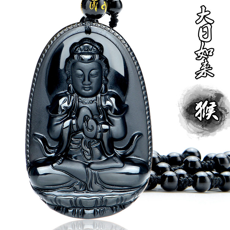 天然黑曜石吊坠男士生肖属羊属猴本命佛守护神项链女大日菩萨