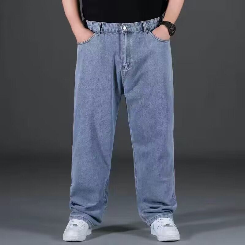 秋冬特大码牛仔裤男加肥加大宽松弹力宽松直筒胖子长裤子耐磨耐脏