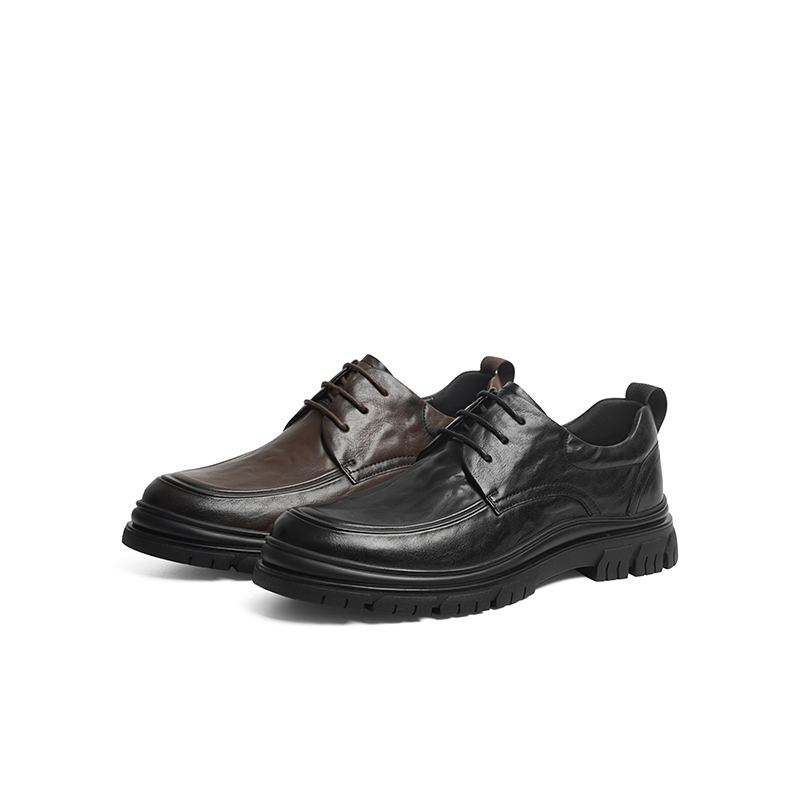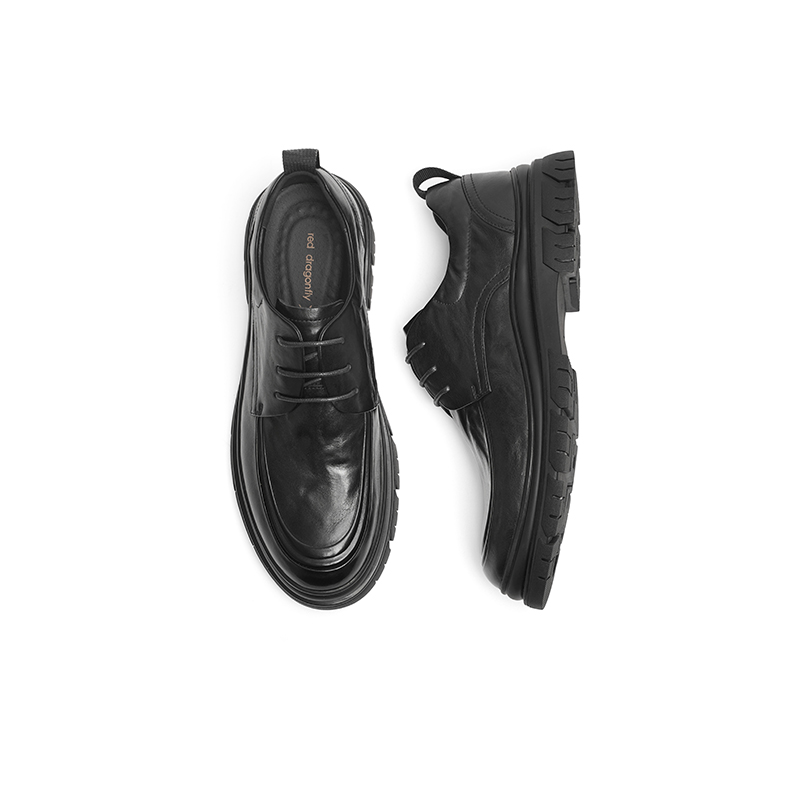 红蜻蜓厚底真皮休闲正装德比皮鞋
