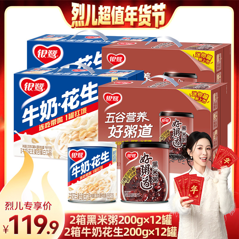 【付定!烈儿超值年货节】银鹭黑米粥牛奶花生八宝粥送礼礼盒春节