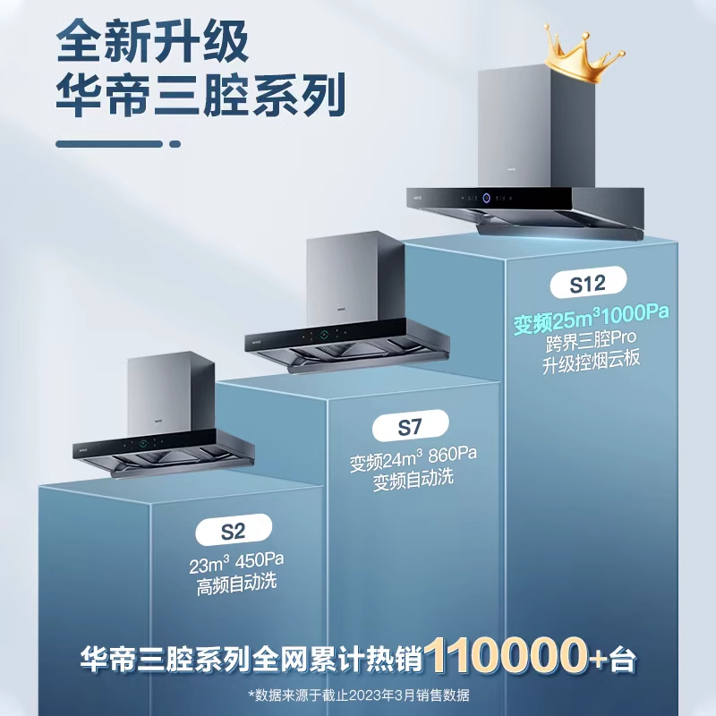 华帝S12 家用三腔顶吸抽油烟机变频大吸力油烟机正品官方旗舰店