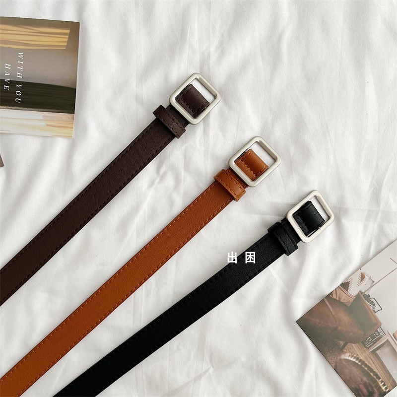 设计感小众百搭腰带女免打孔裤带装饰细新款皮带女款配牛仔裤黑色
