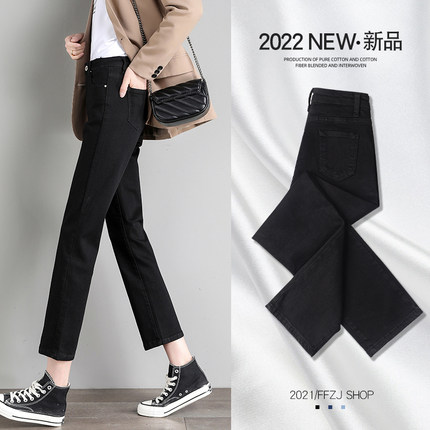 黑色直筒裤女2025新款春秋高腰八分九分小个子夏季薄款烟管牛仔裤