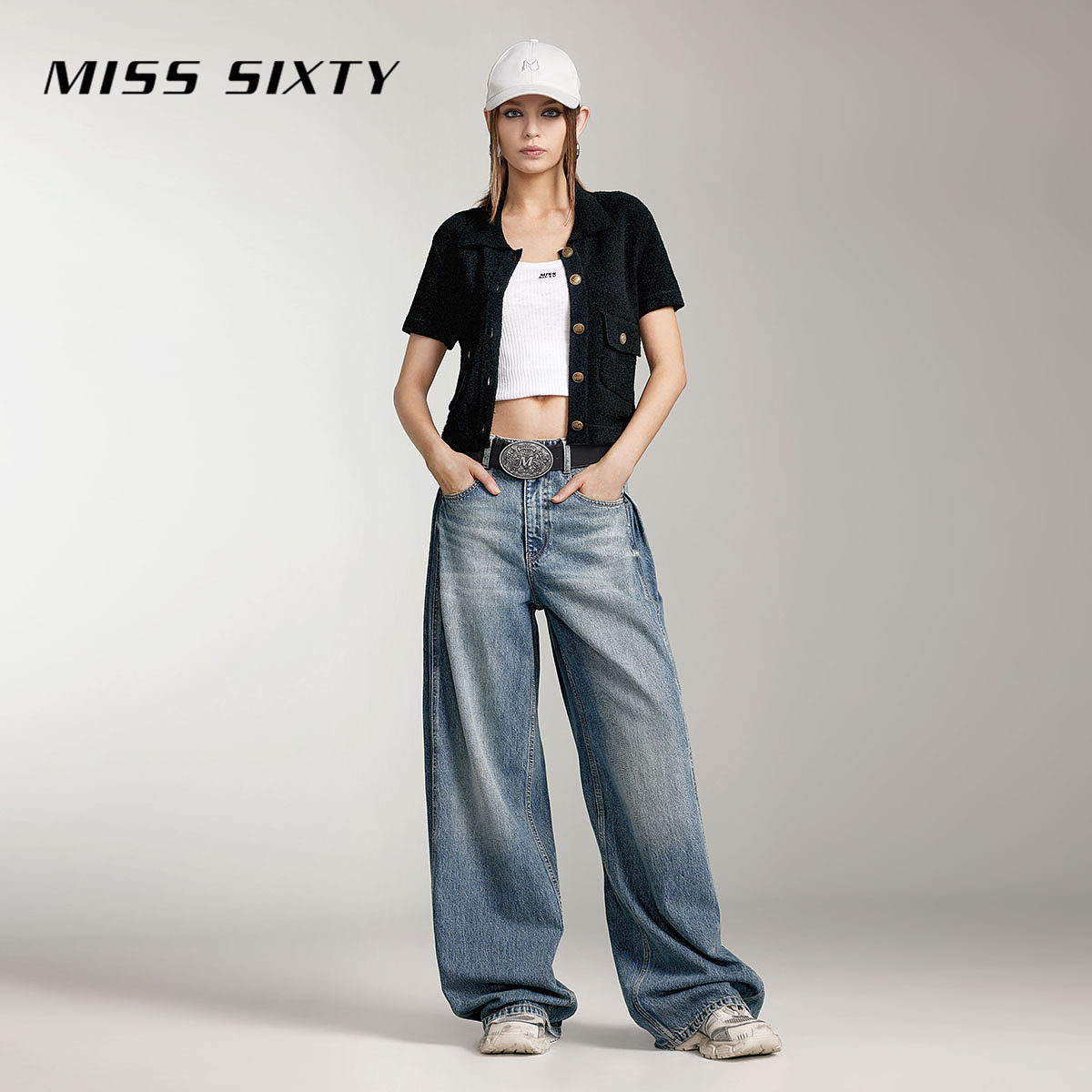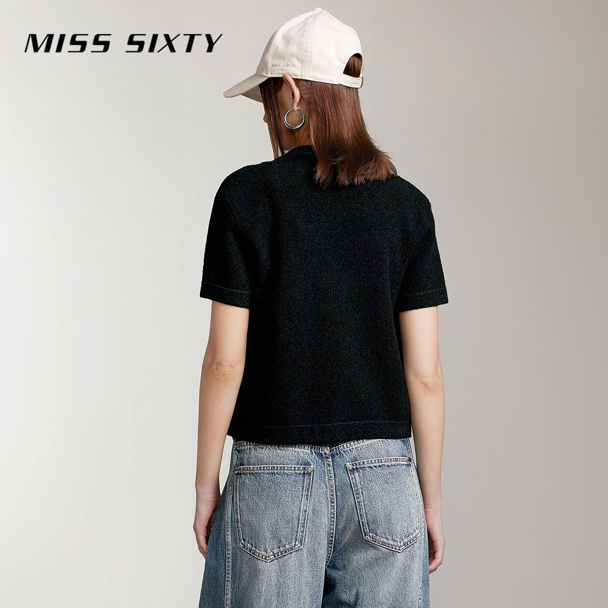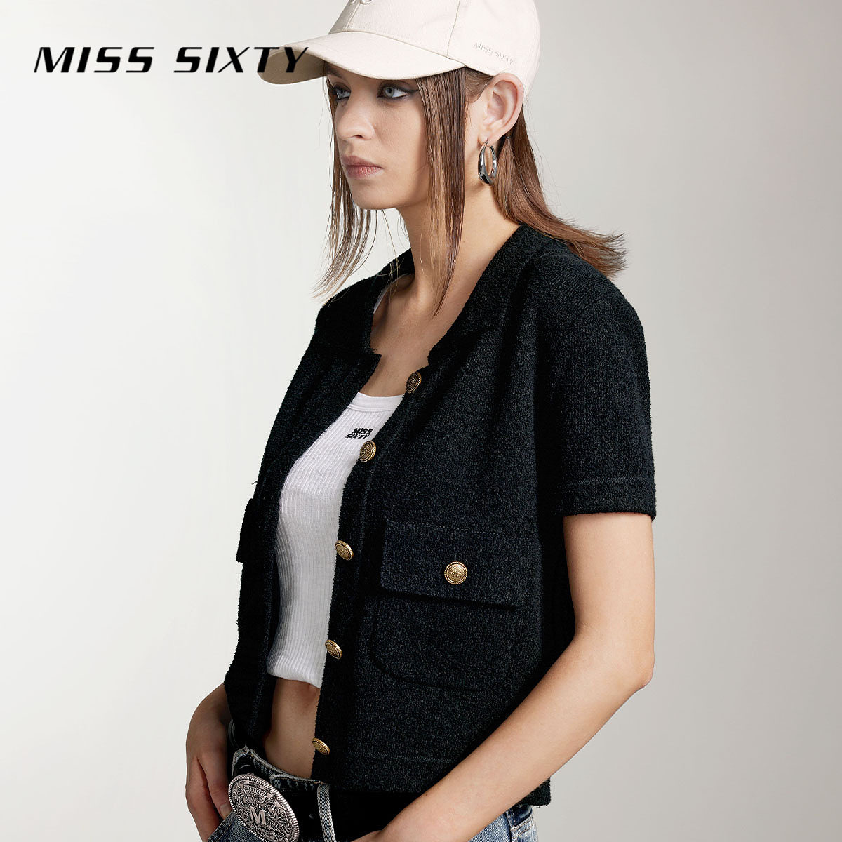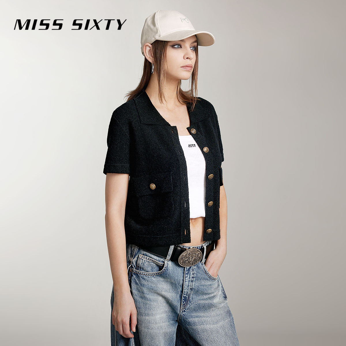 Miss Sixty针织外套女翻领静奢气质小香风短袖优雅短款上衣开衫