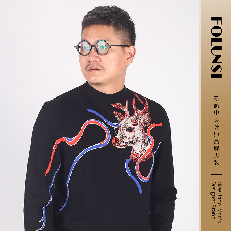 佛伦斯FOLUNSI秋冬时尚百搭款男装宽松简约针织衫外套上衣