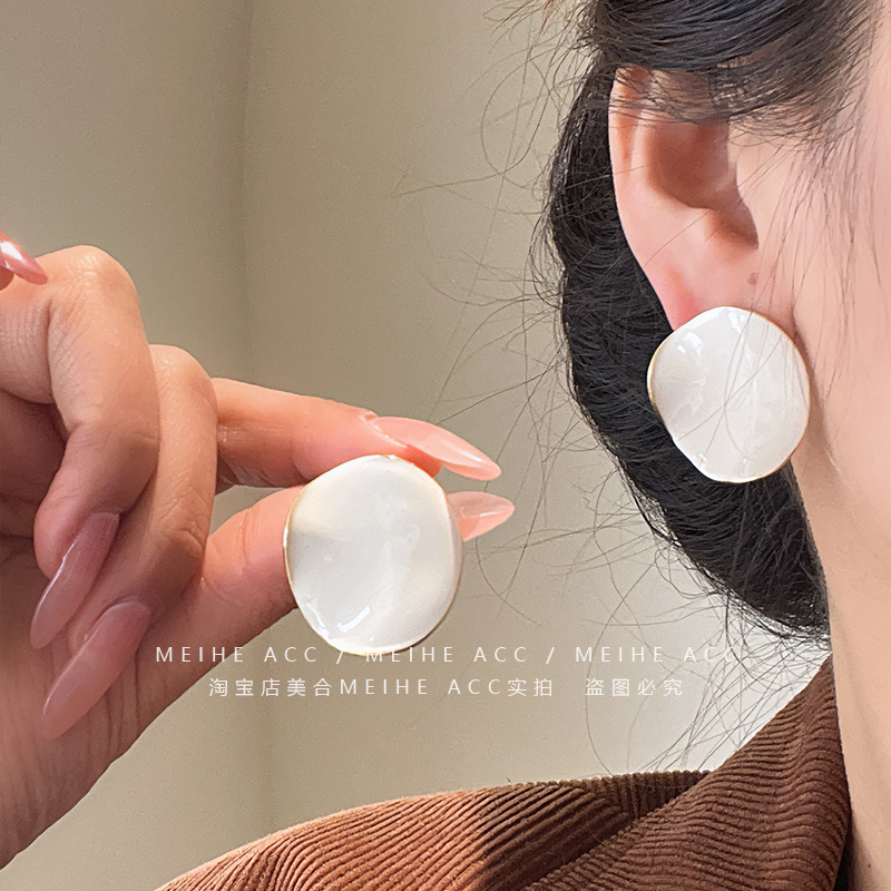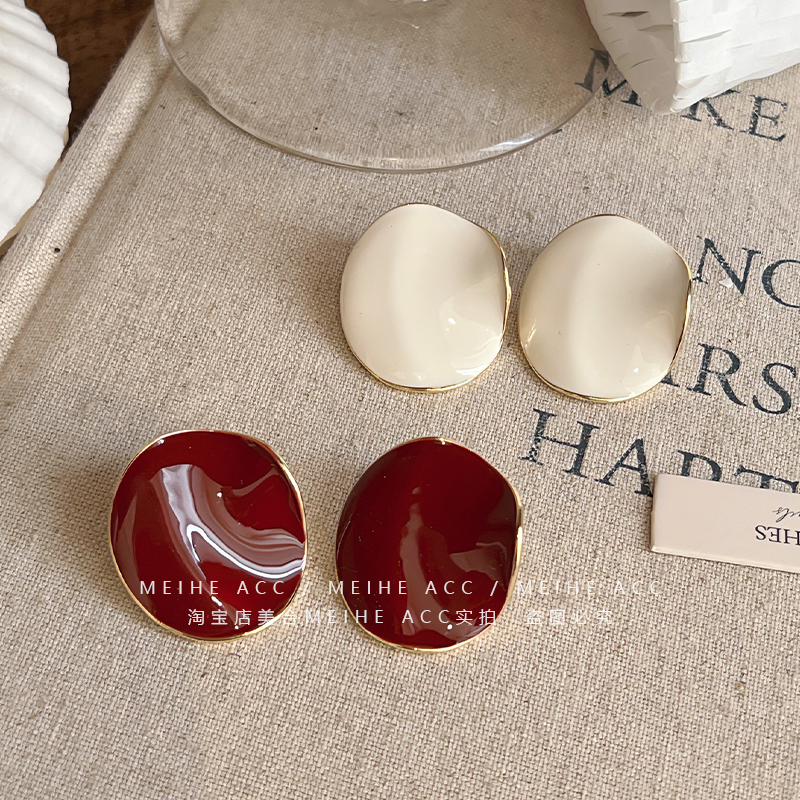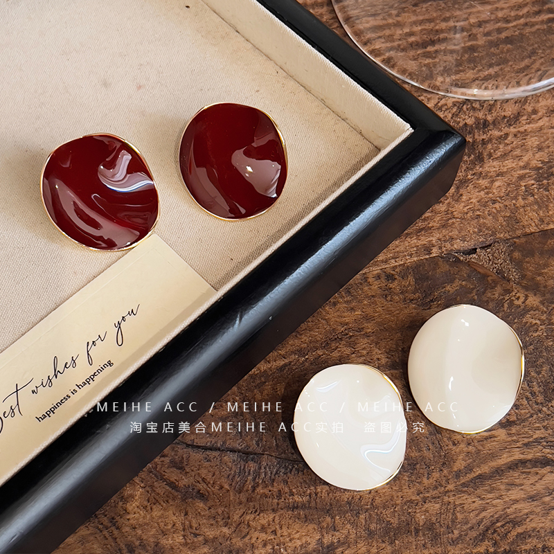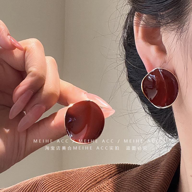 酒红梦屿~法式复古夸张大几何圆形滴油耳钉百搭优雅气质耳饰个性