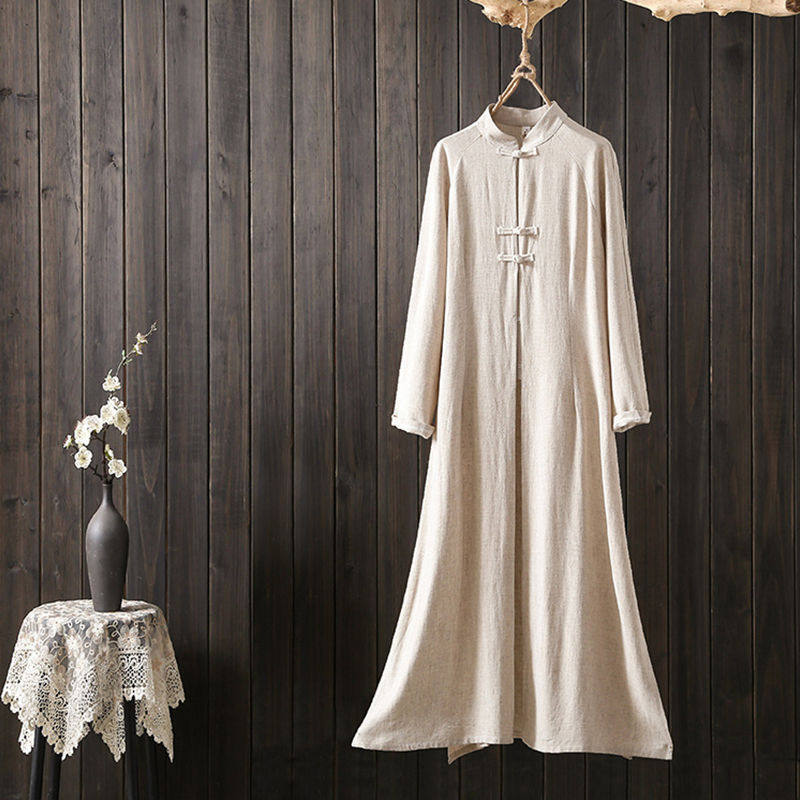 茶服风禅意文艺连衣裙女复古盘扣中式改良旗袍棉麻阔腿裤套装跨境